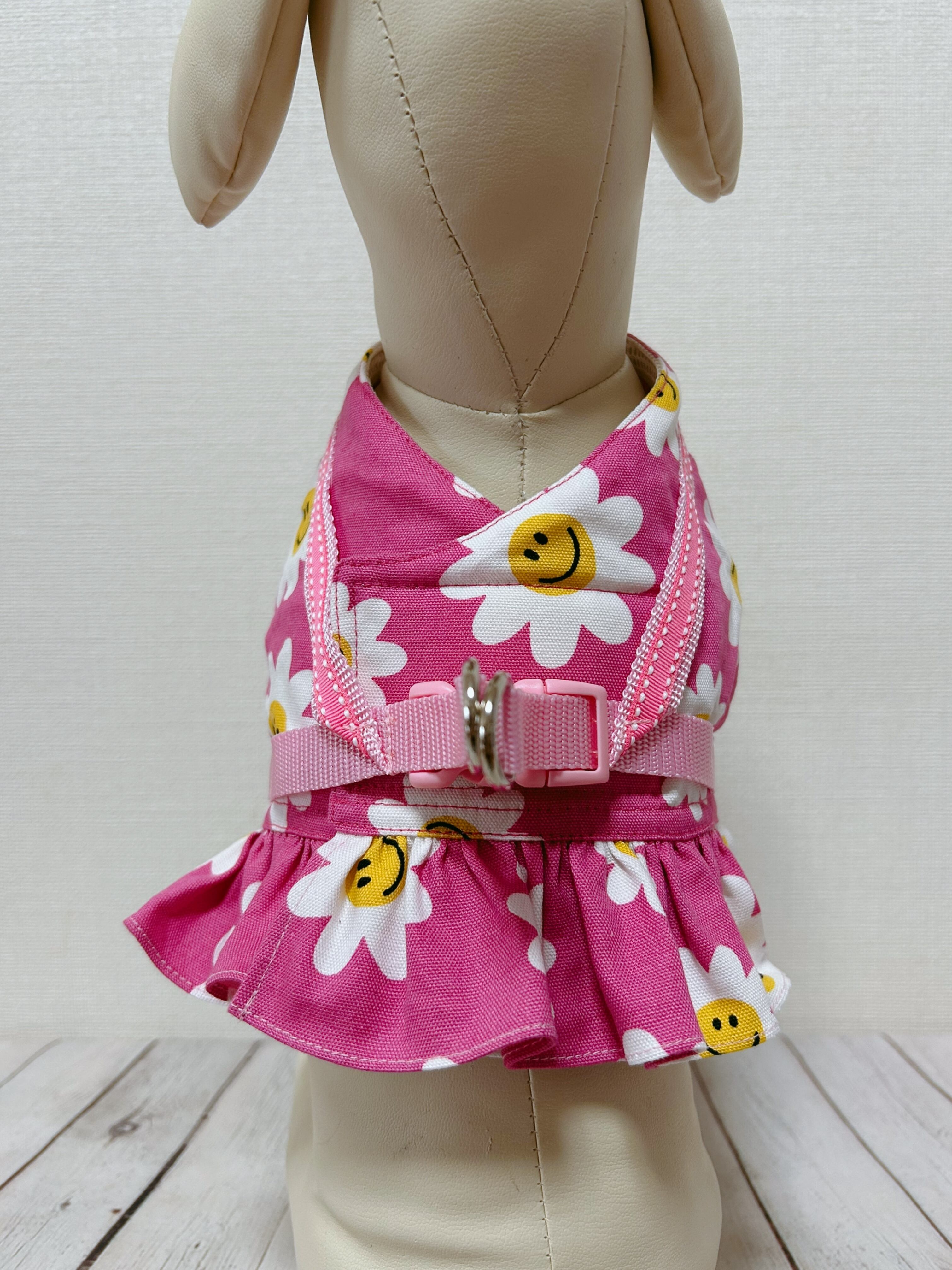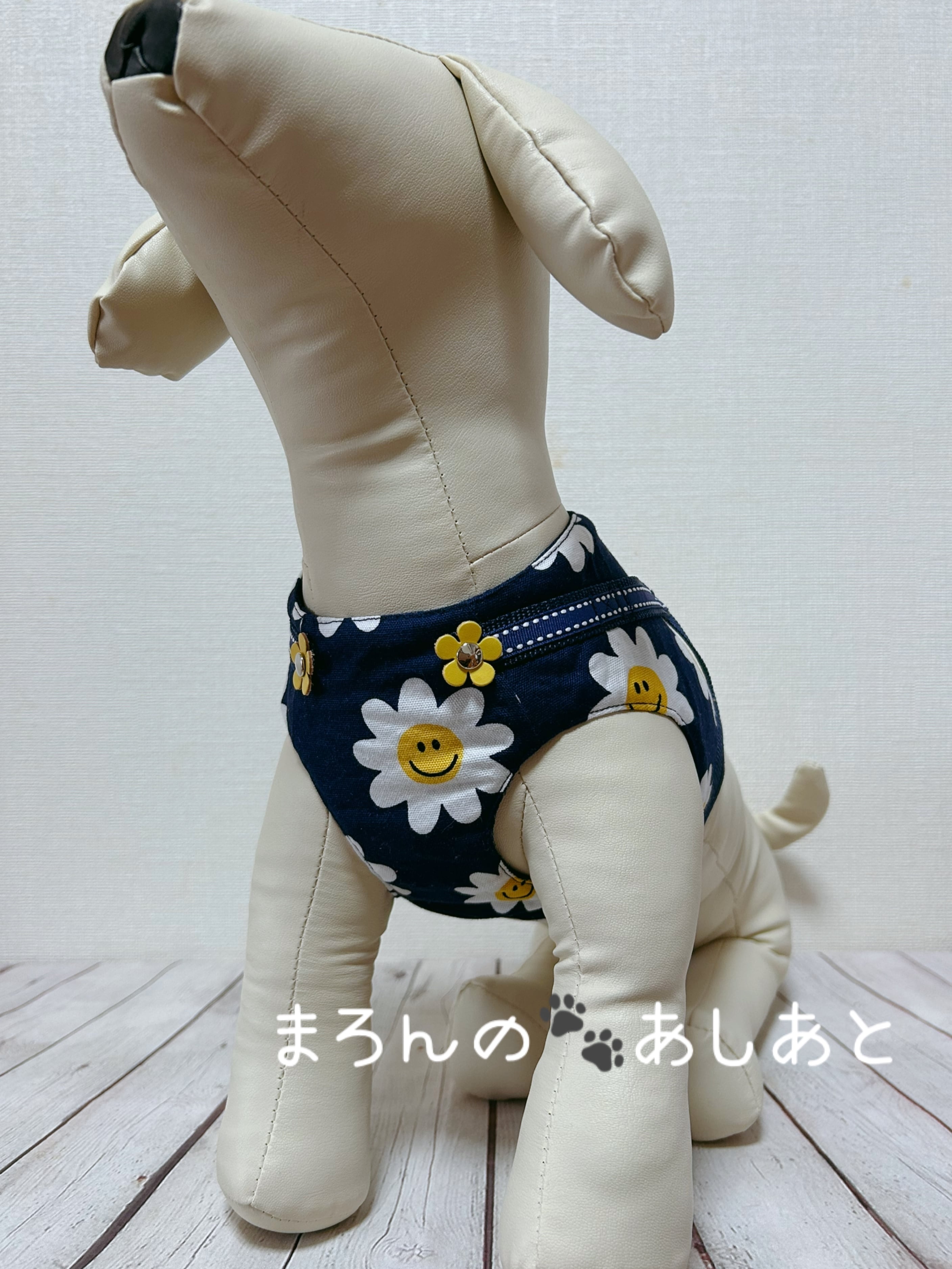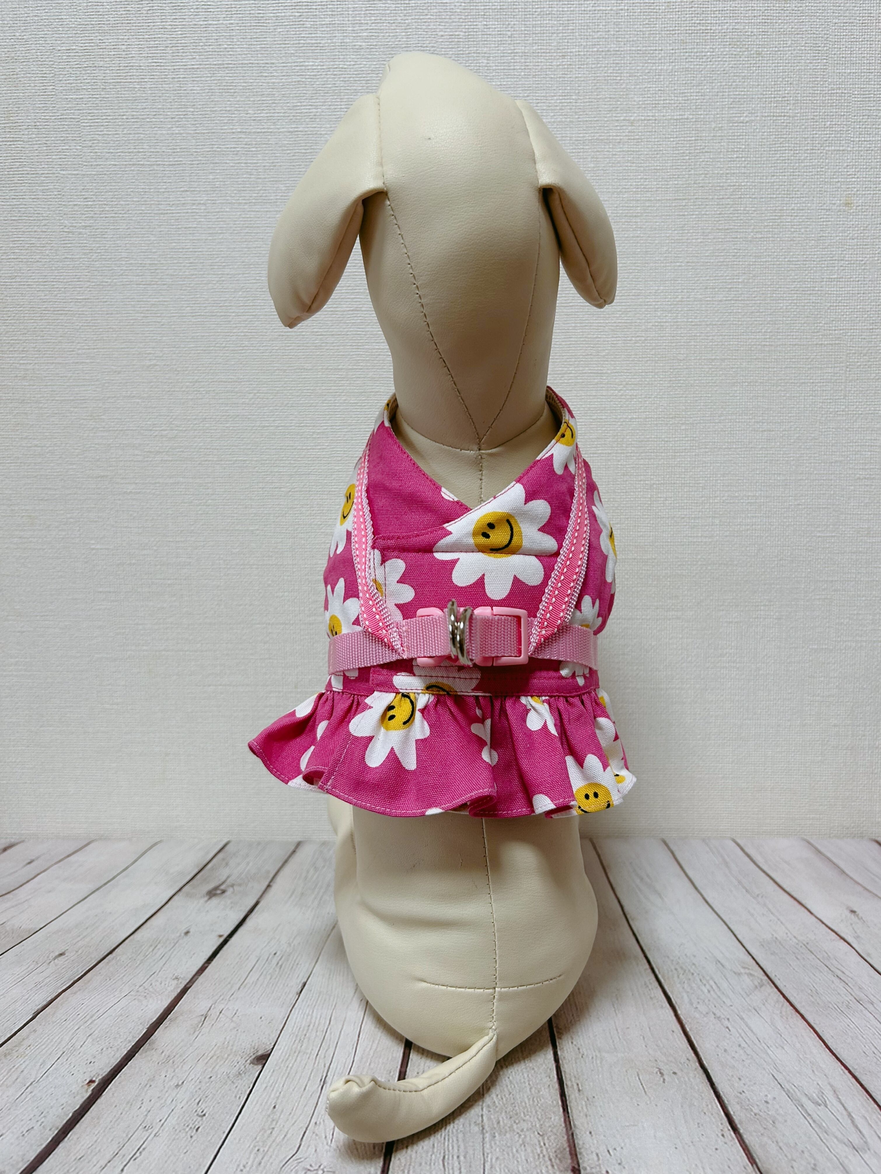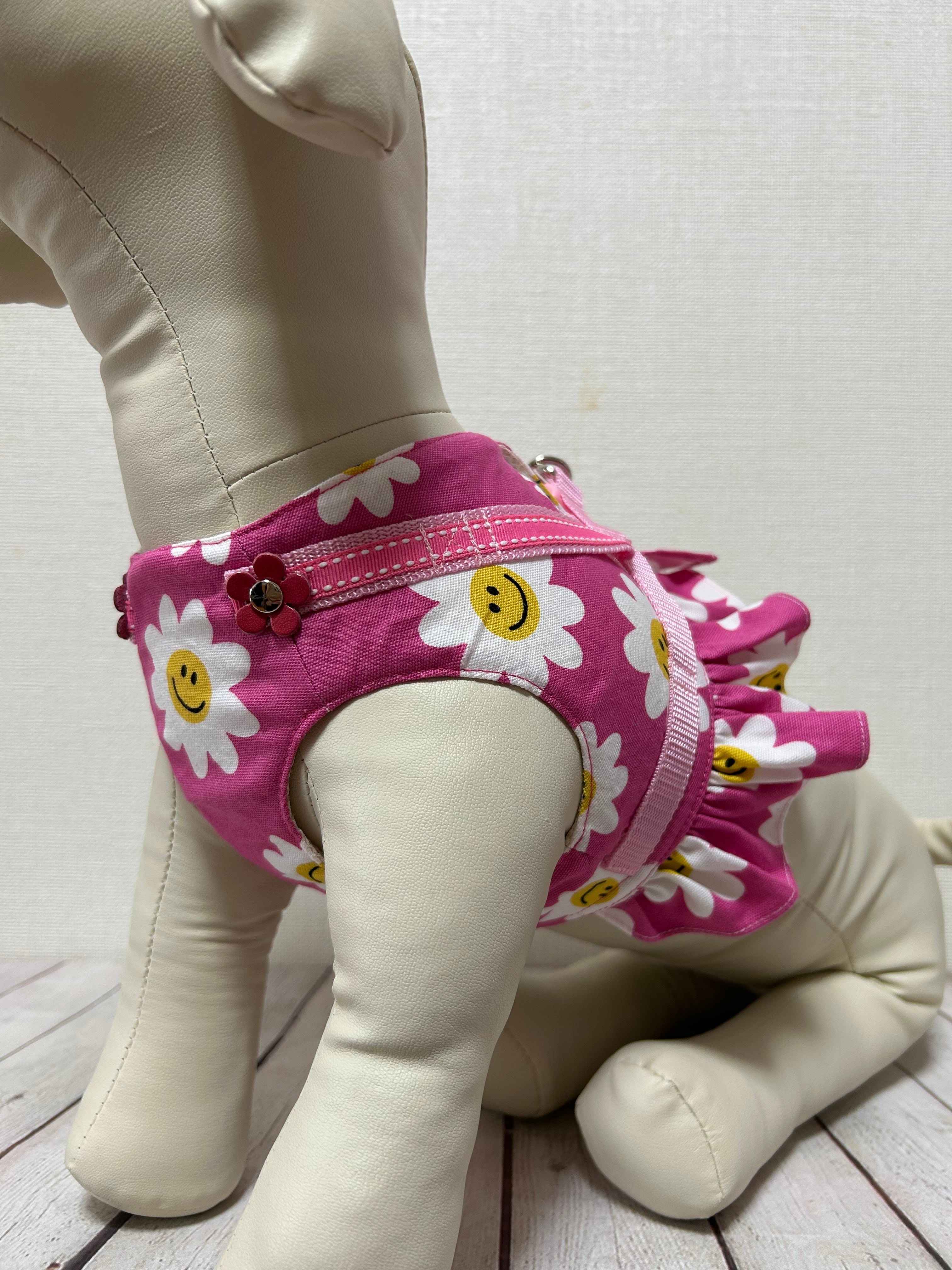 犬猫ハーネス スマイルフラワー フラワーモチーフ(牛革) 裾ミニフリル