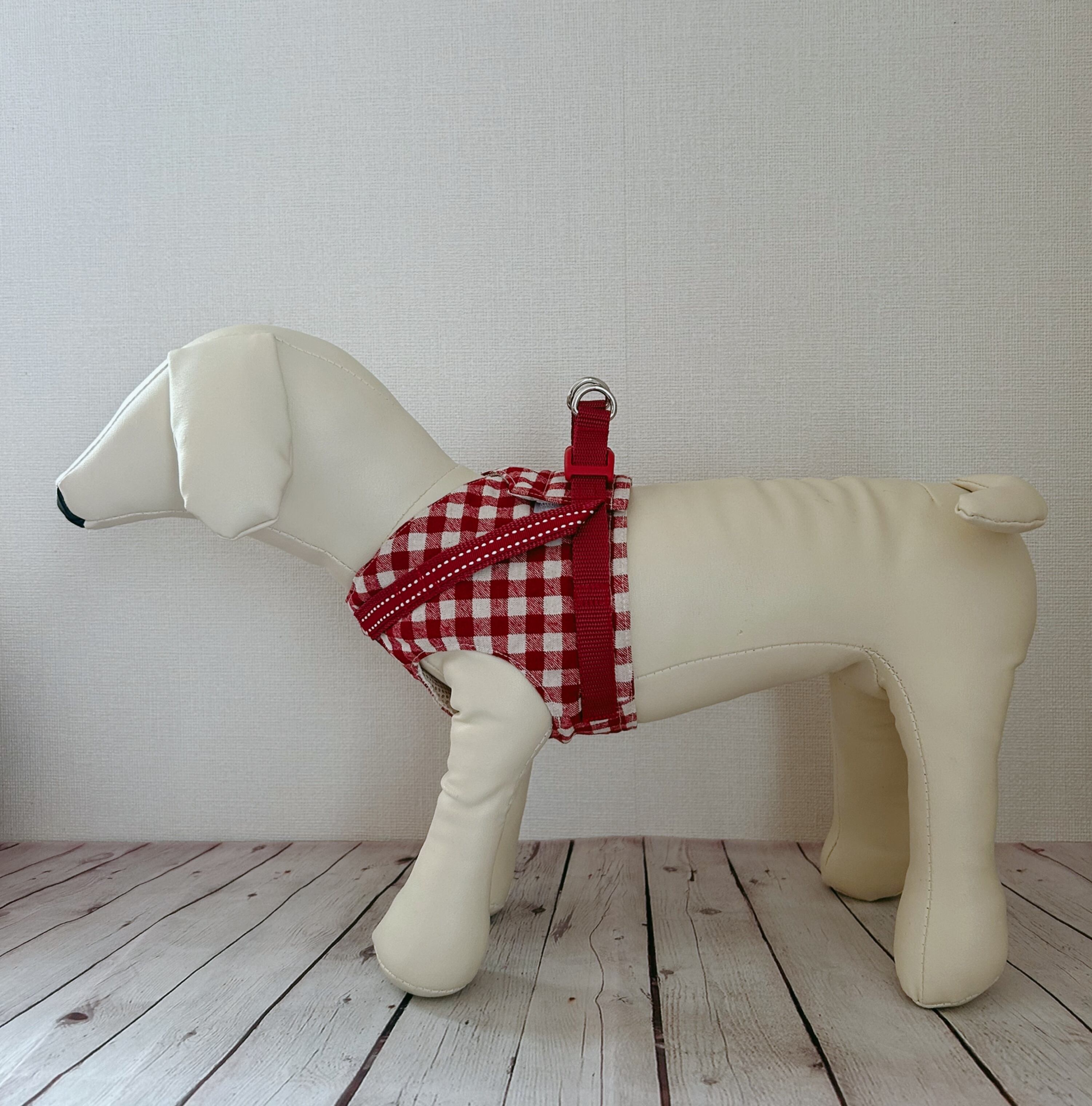 犬猫ハーネス 綿麻キャンバス ギンガムチェック