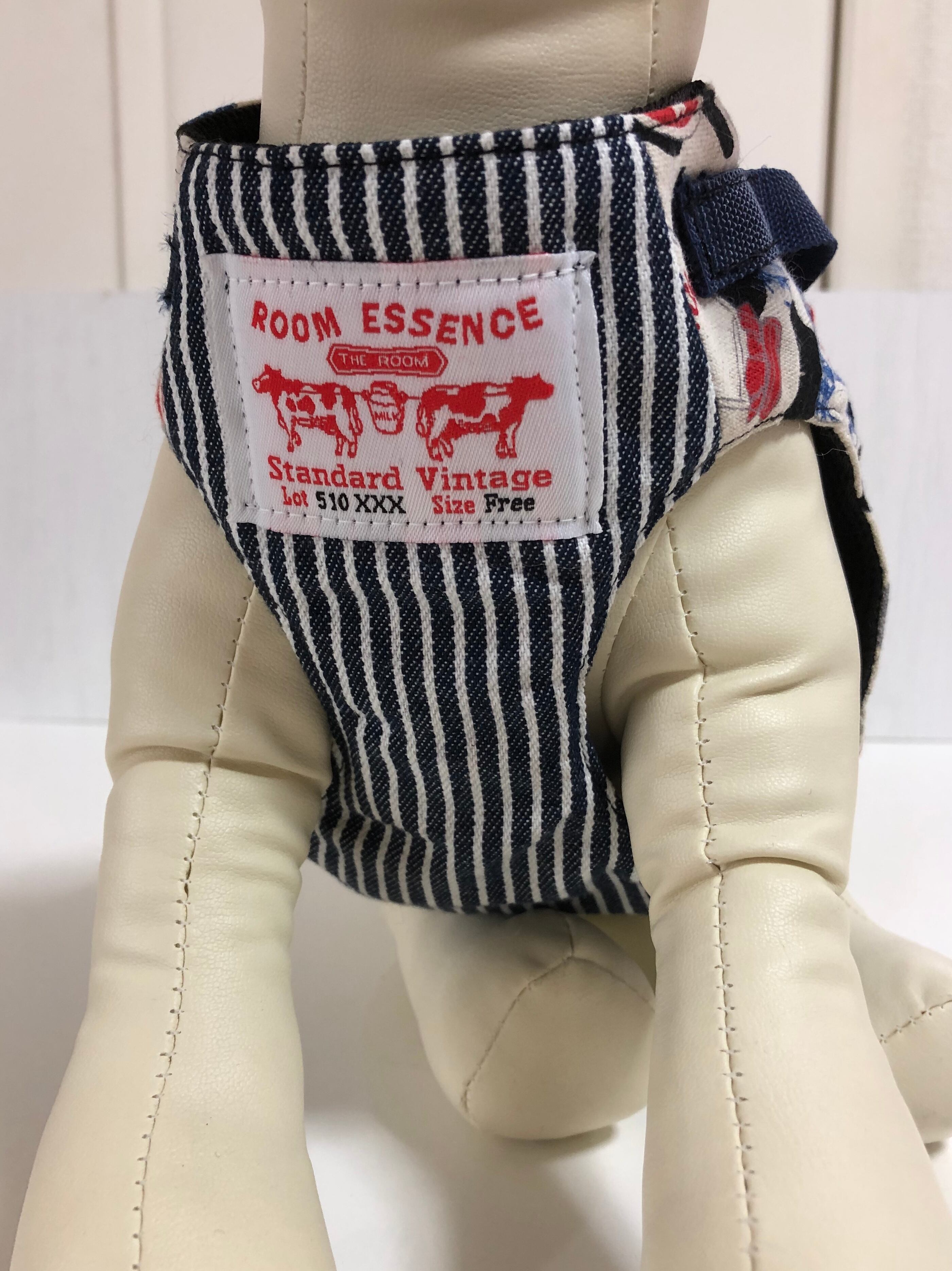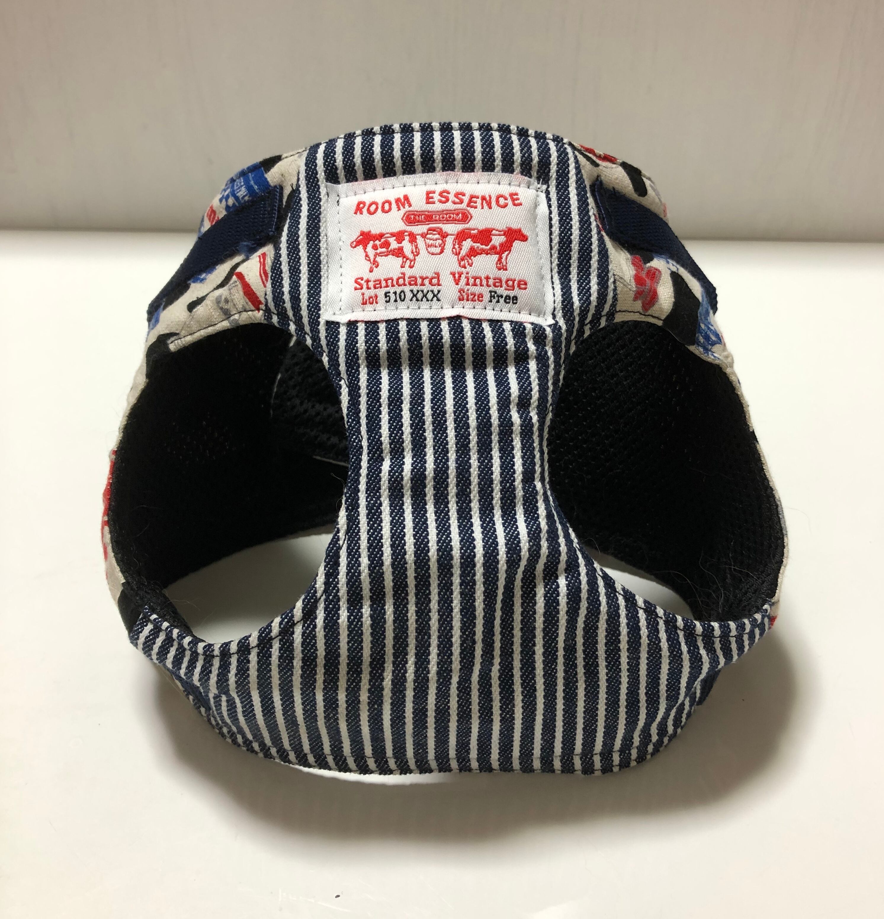 犬用 2点留めハーネス ミルク柄×ヒッコリー イニシャルチャーム付き