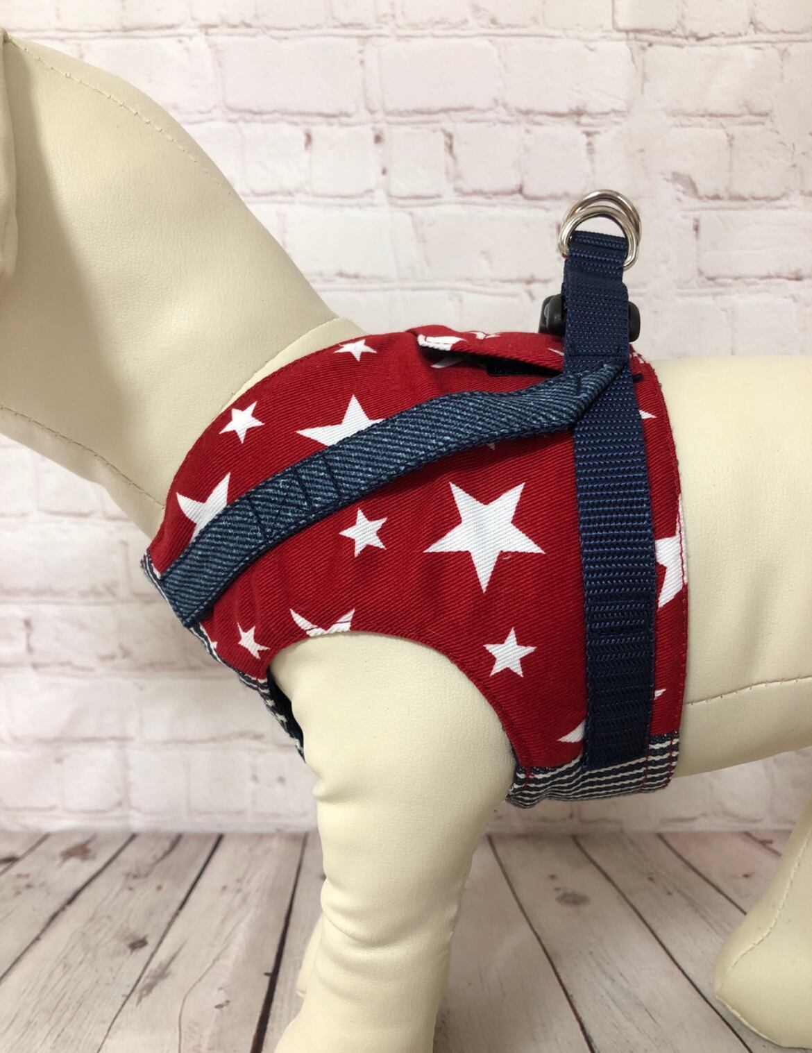 犬猫ハーネス ☆星柄×ヒッコリー