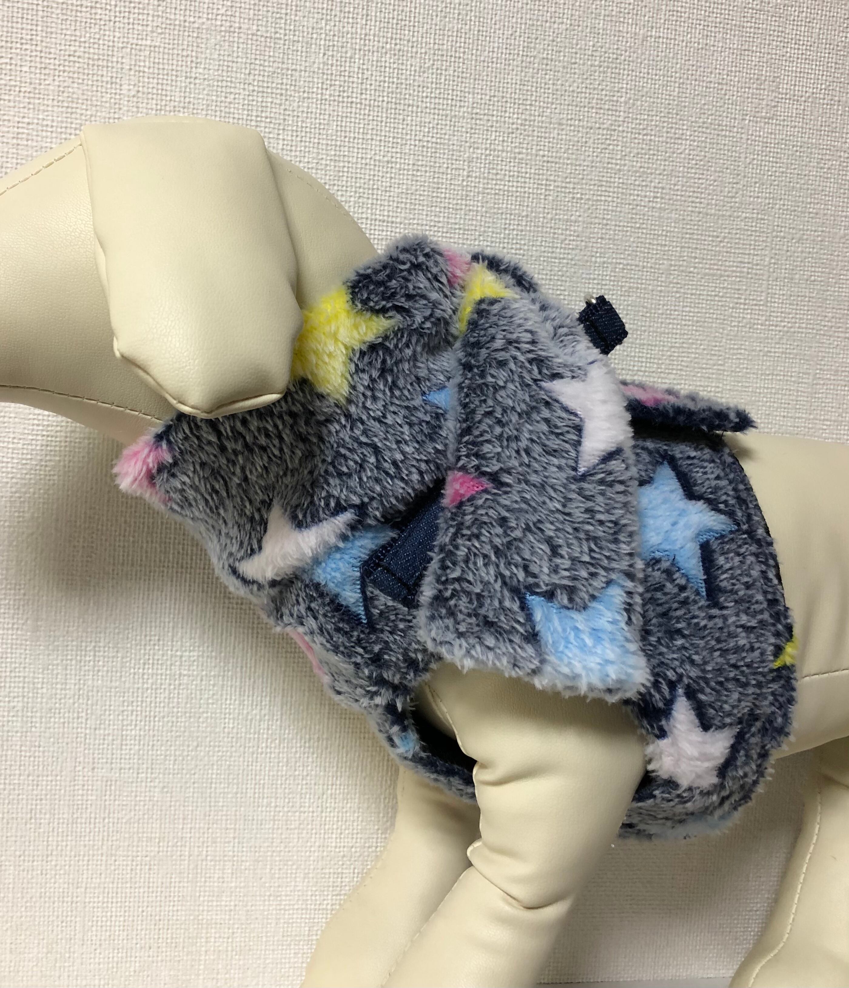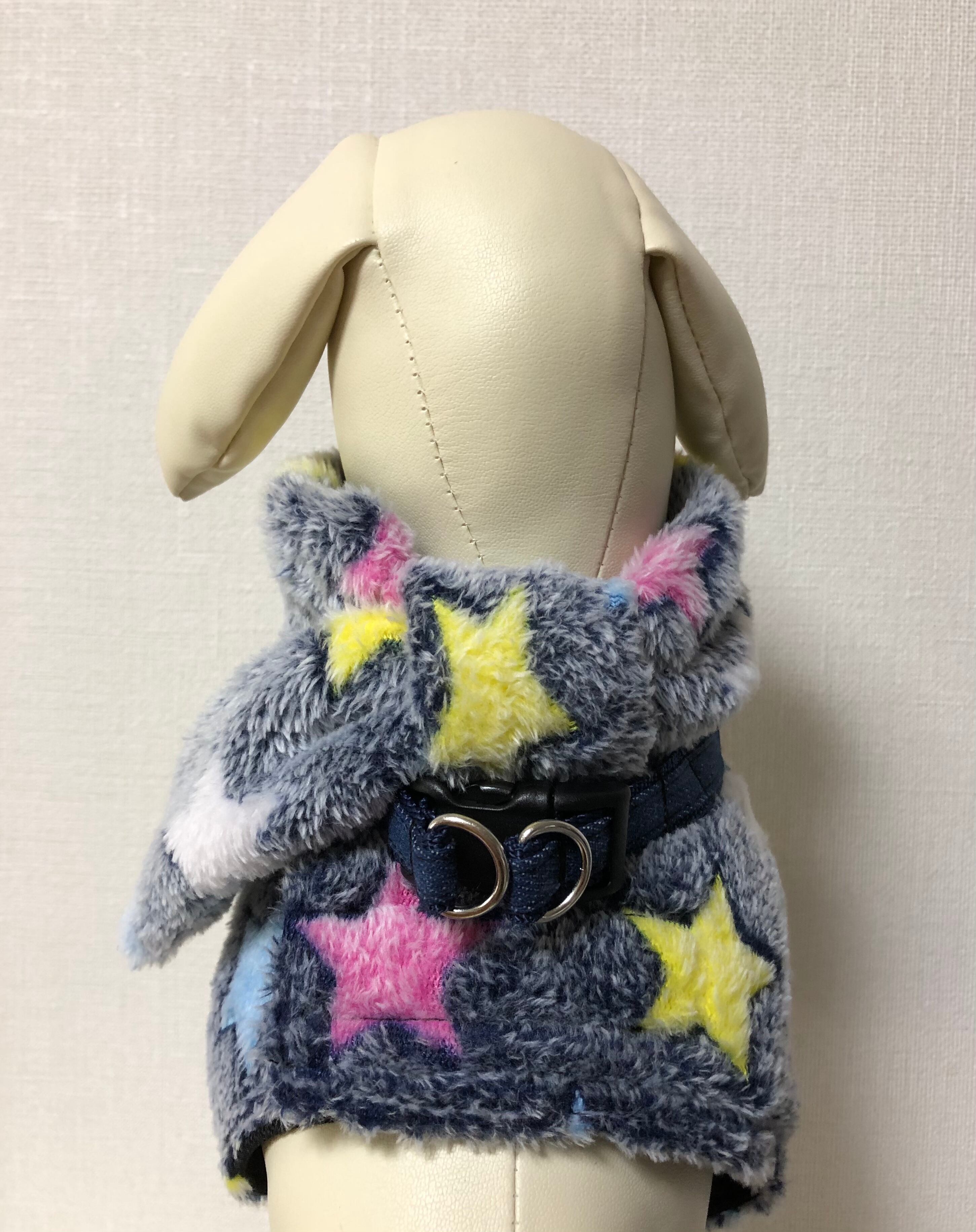 犬用 冬用ハーネス フリース星柄 マフラーとチャーム付き