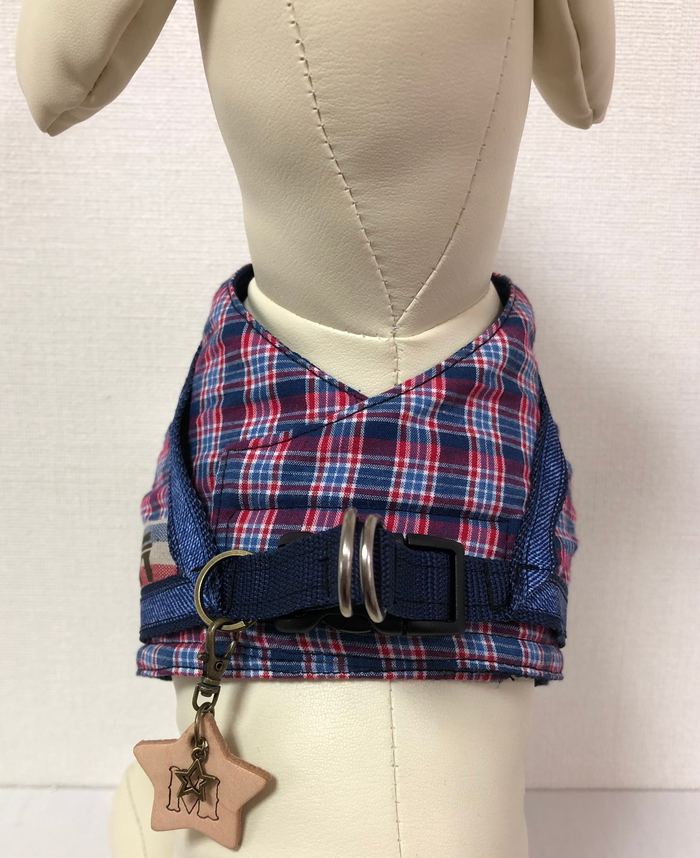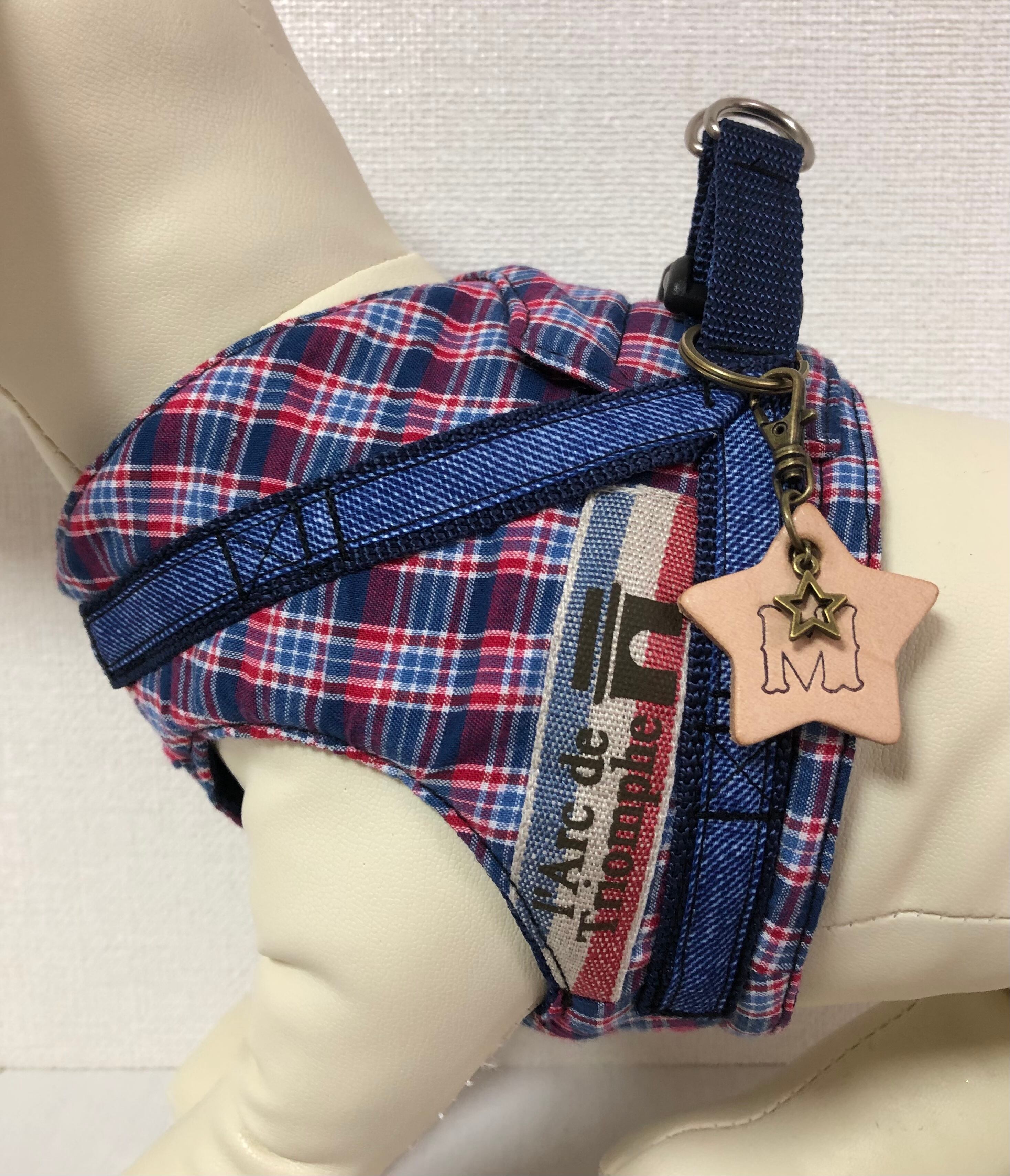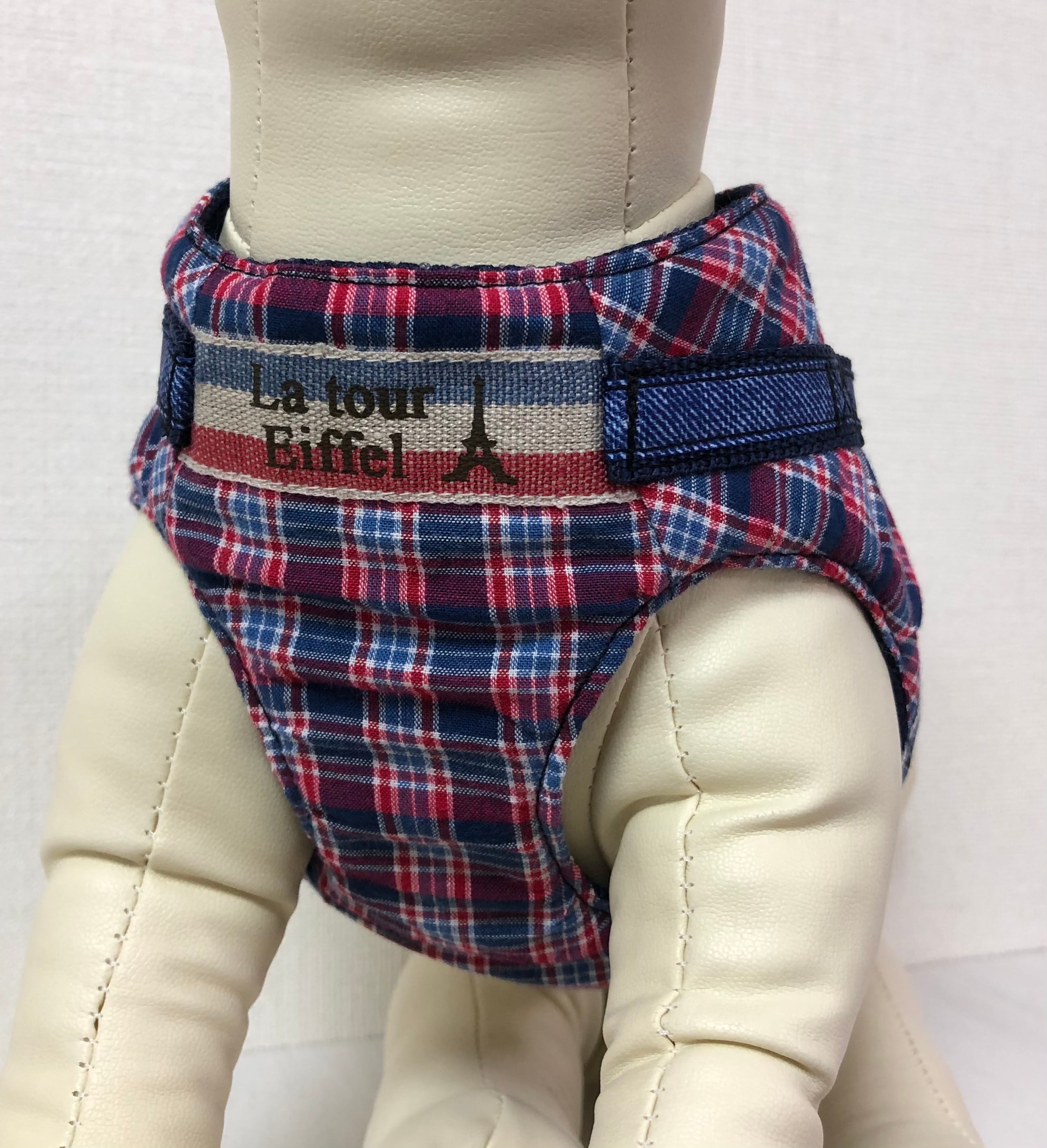 犬猫ハーネス トリコロール チェック エッフェル塔