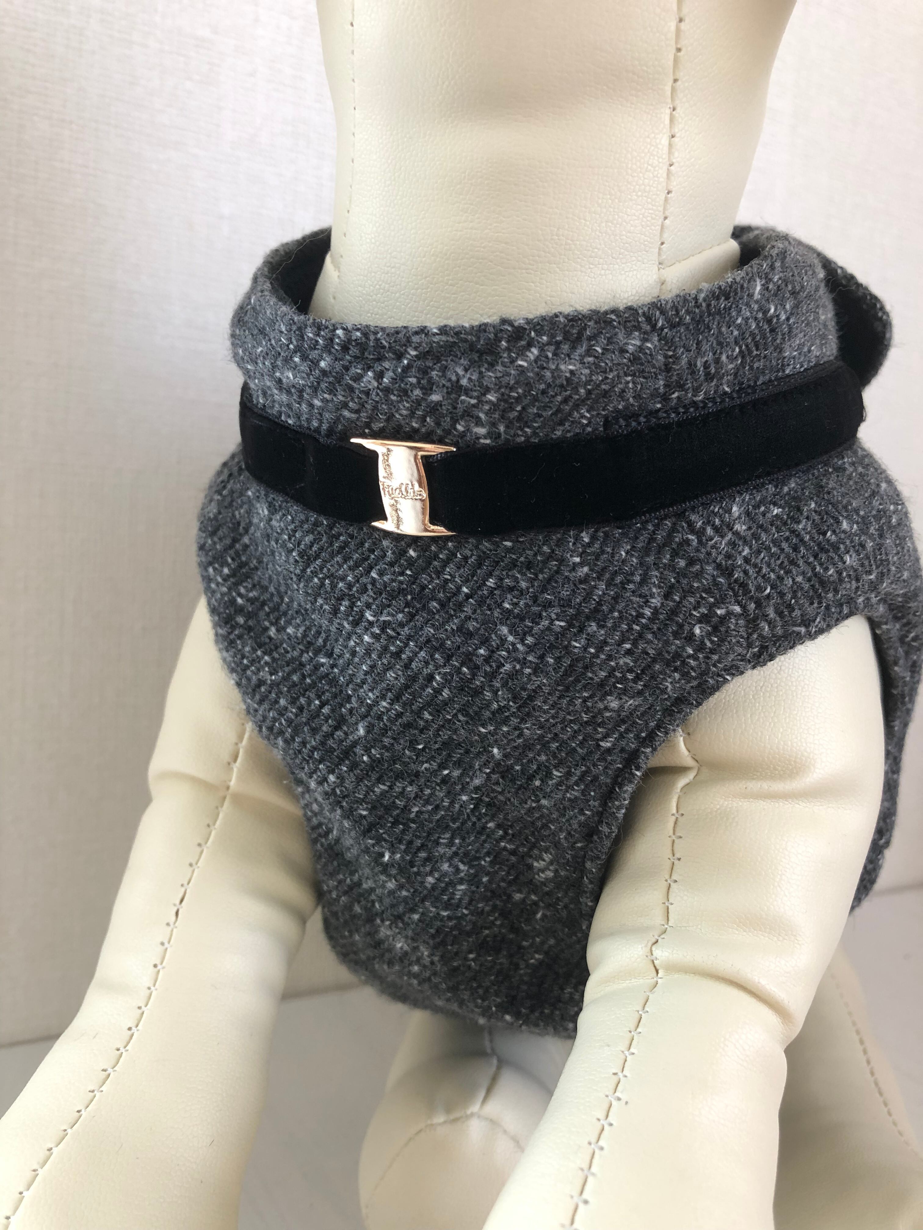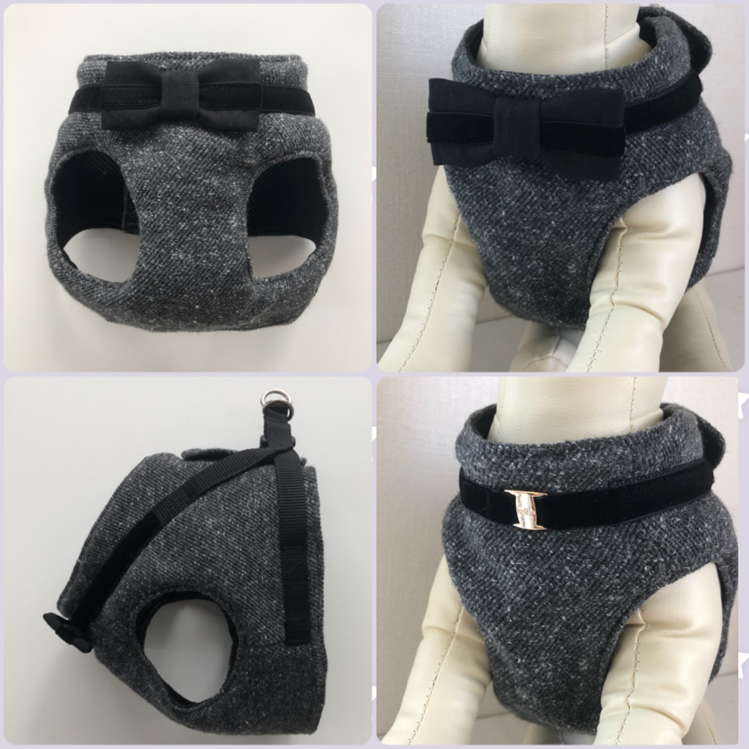 犬用ハーネス 蝶ネクタイとバックル ツイード2点止め