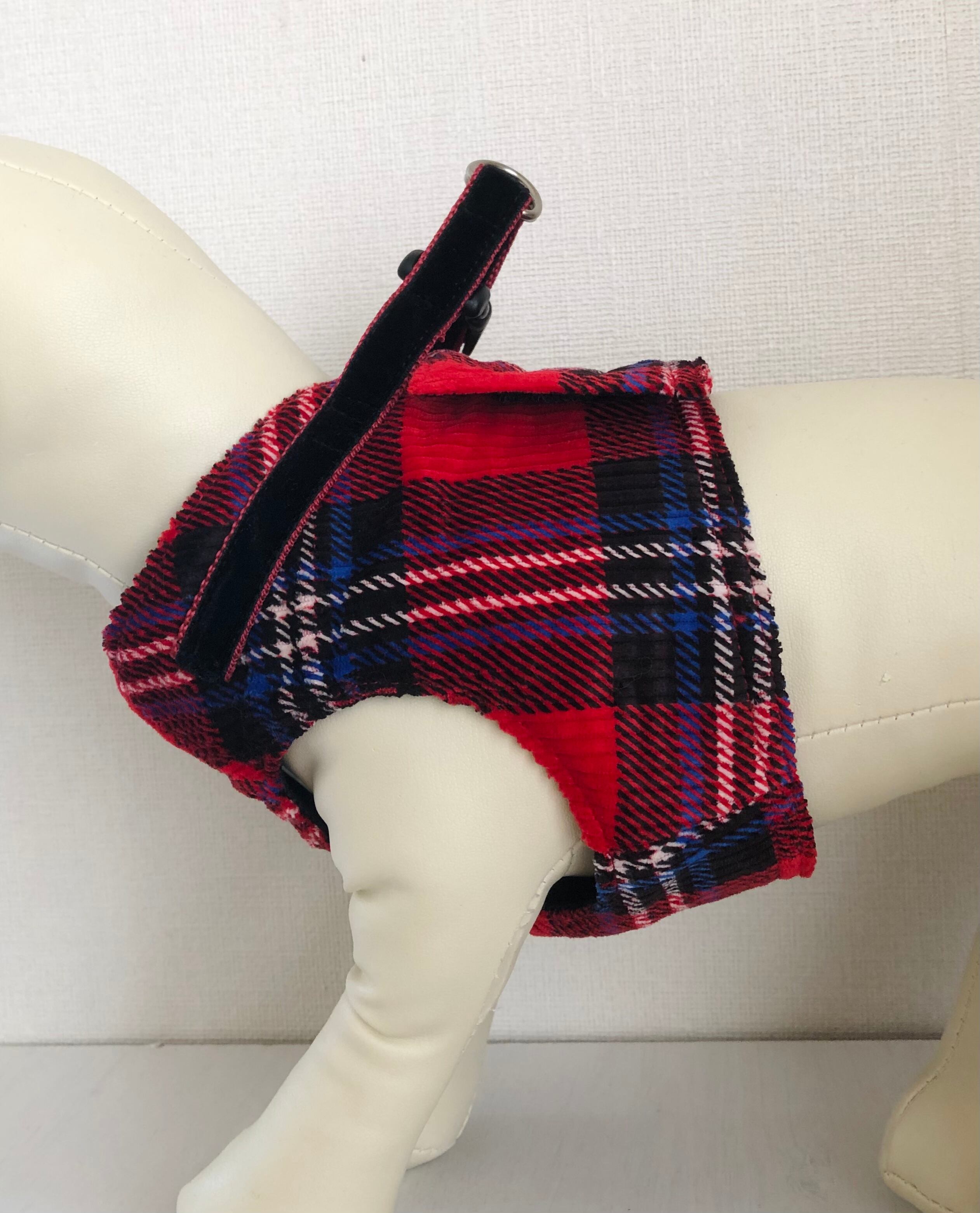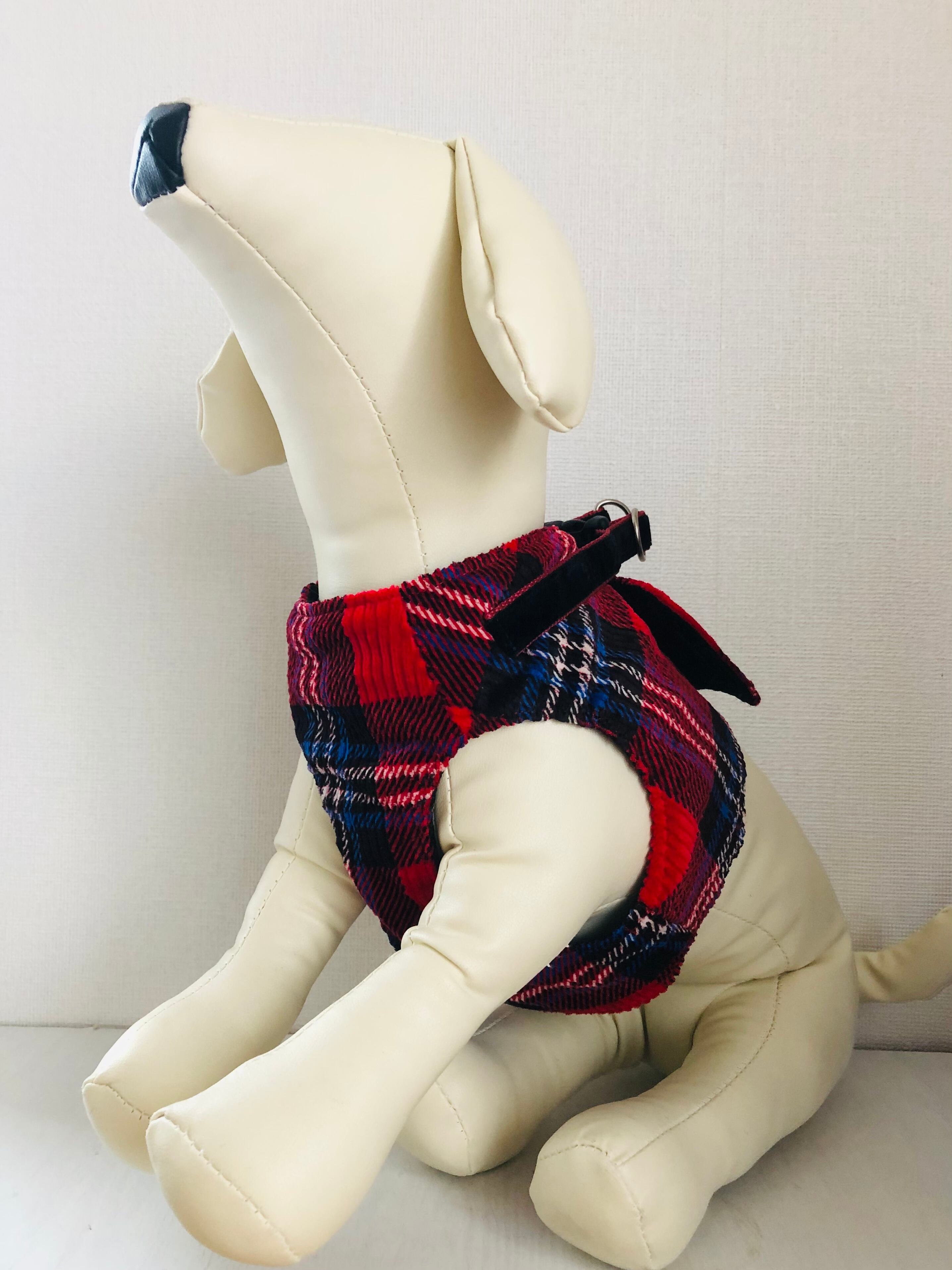 秋冬犬用ハーネス タータンチェックコーデュロイ
