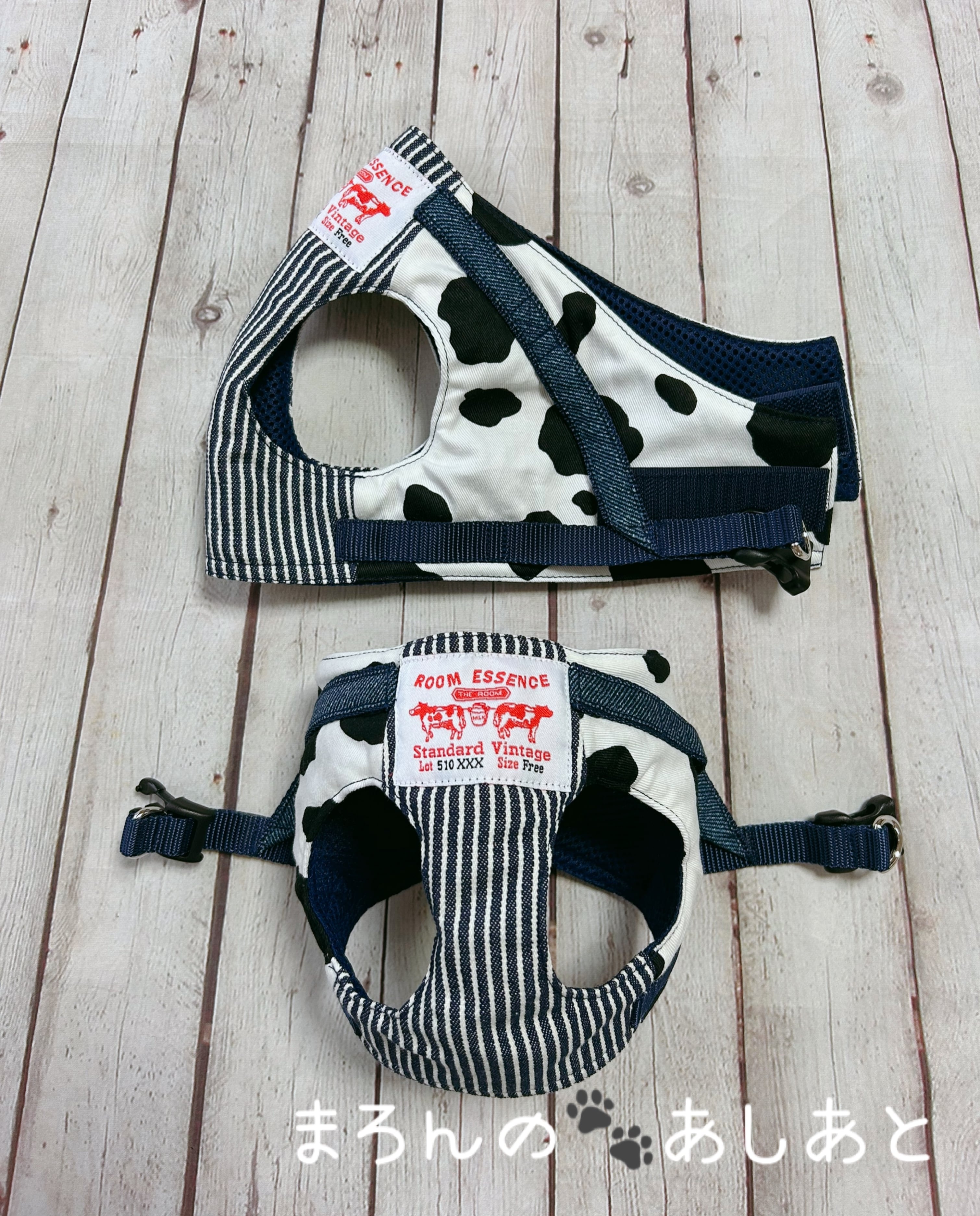 犬猫ハーネス モーモー牛柄×ヒッコリー
