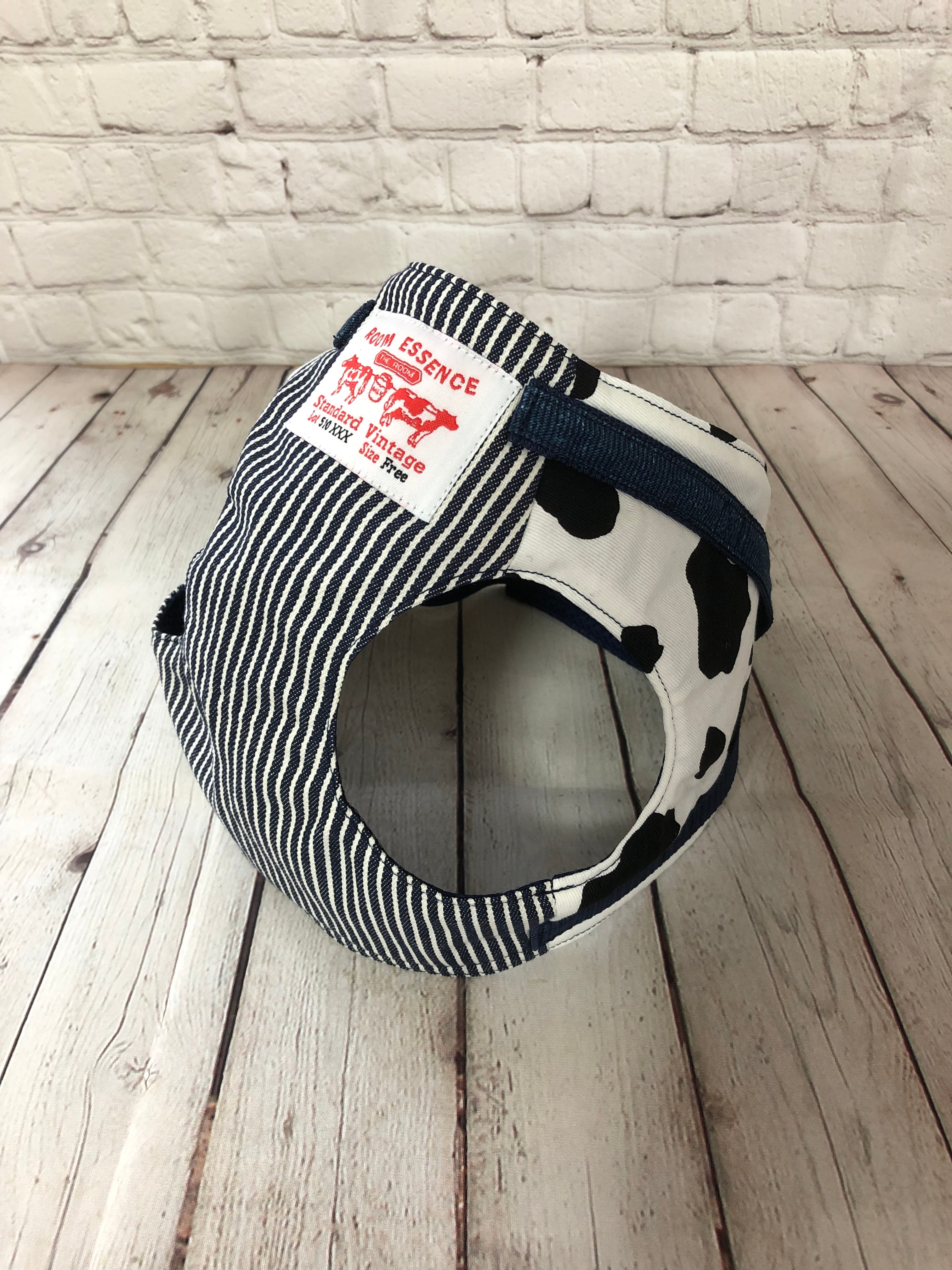 ❤︎ 可愛いモーモー牛柄は、癒されるかわいさ。ヒッコリー生地は強度もありながらも柔らかい風合いで、やさしい素材です。