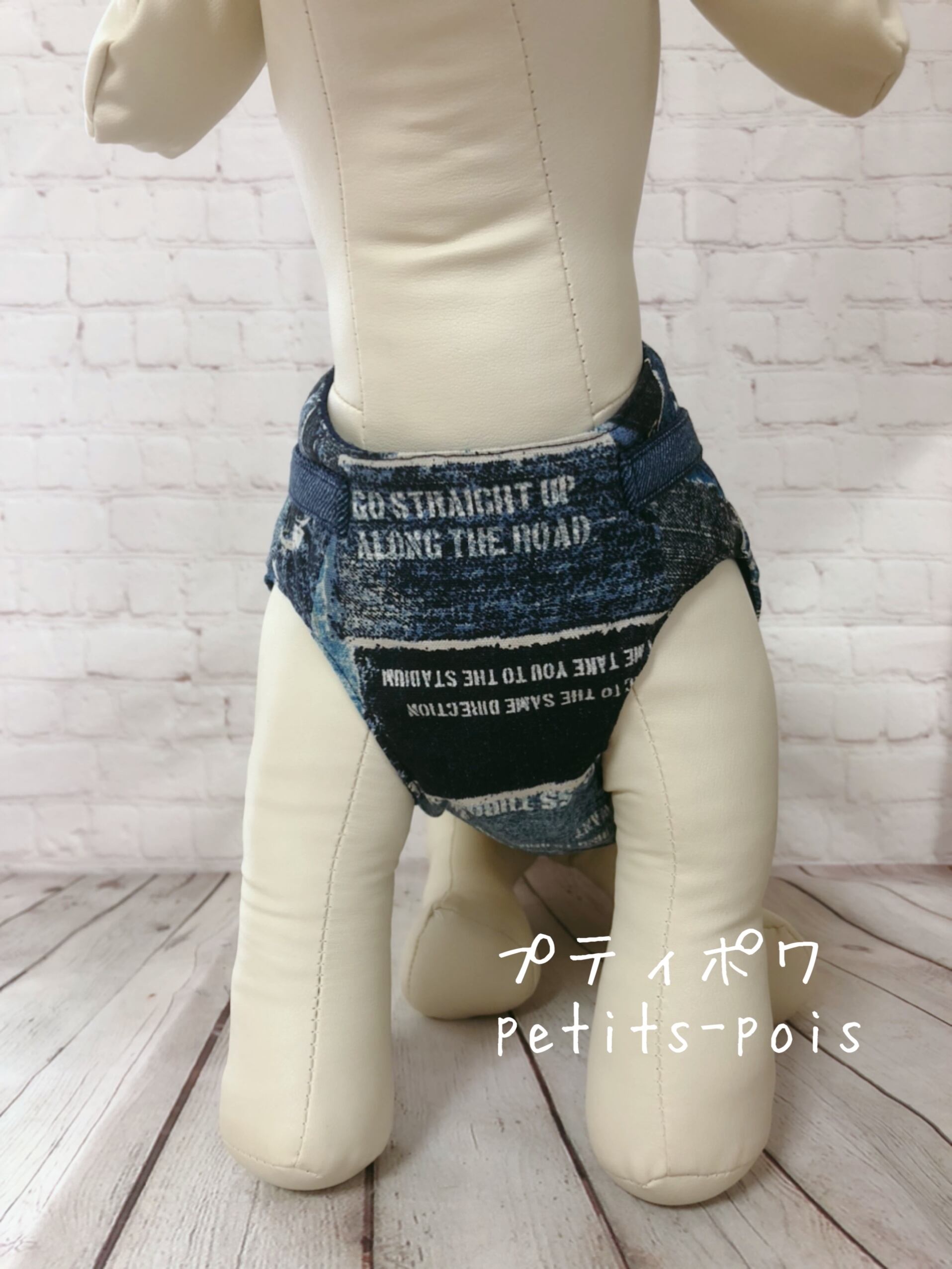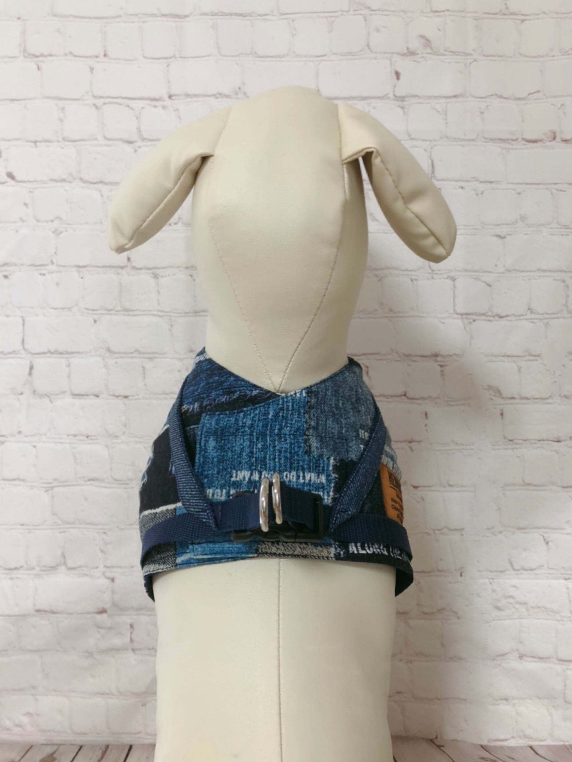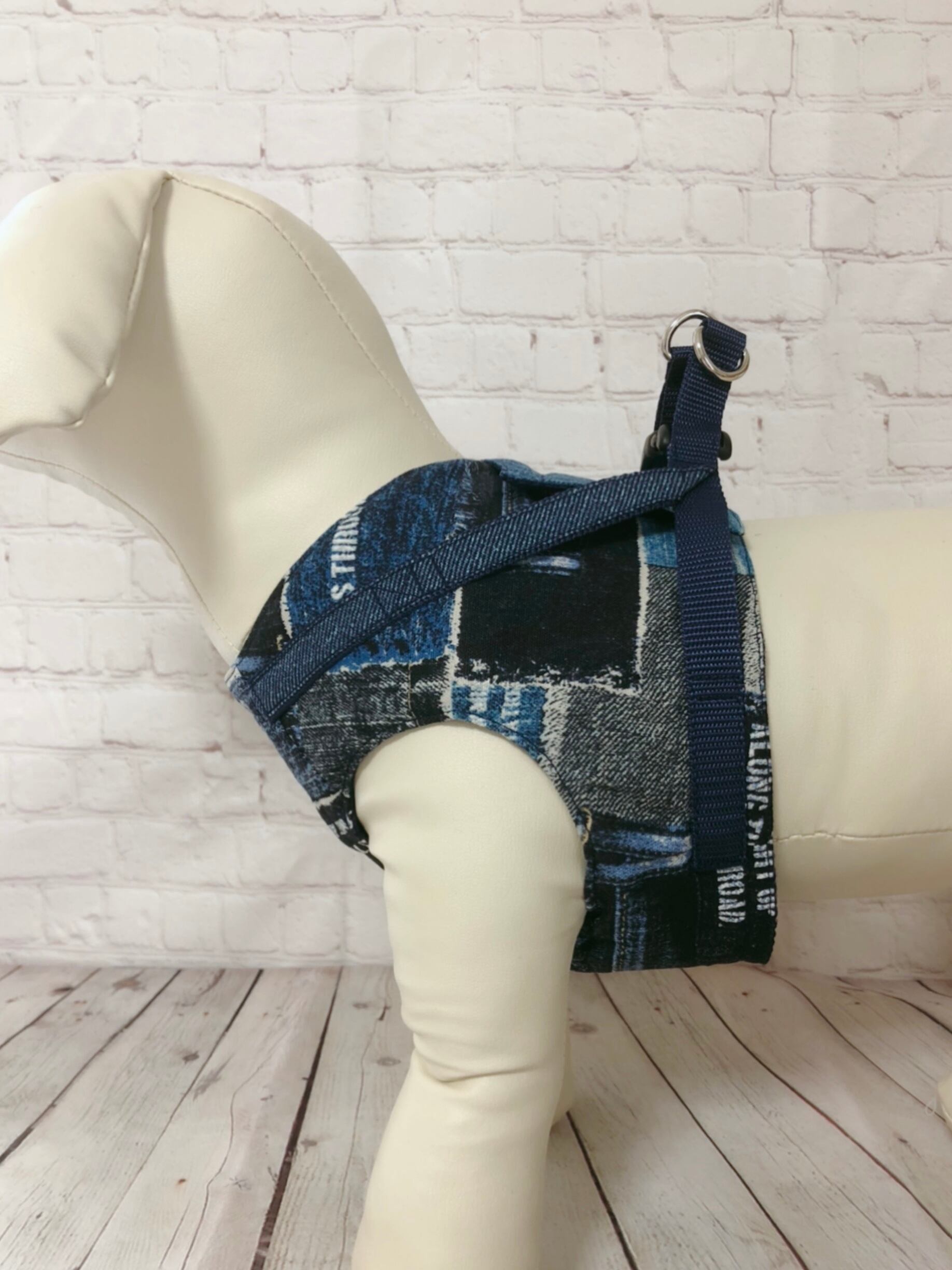 犬猫ハーネス ロゴデニムプリント バックタグ
