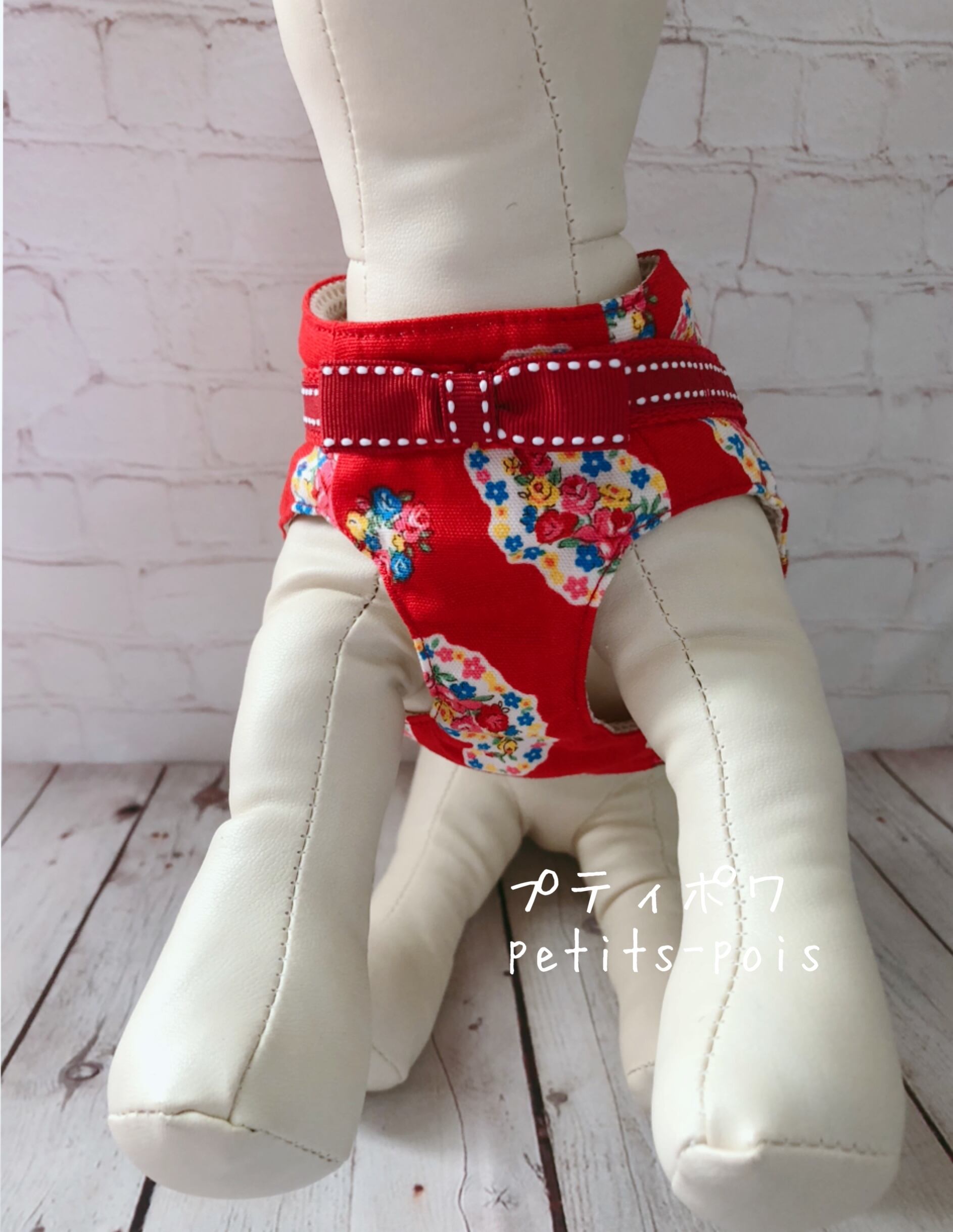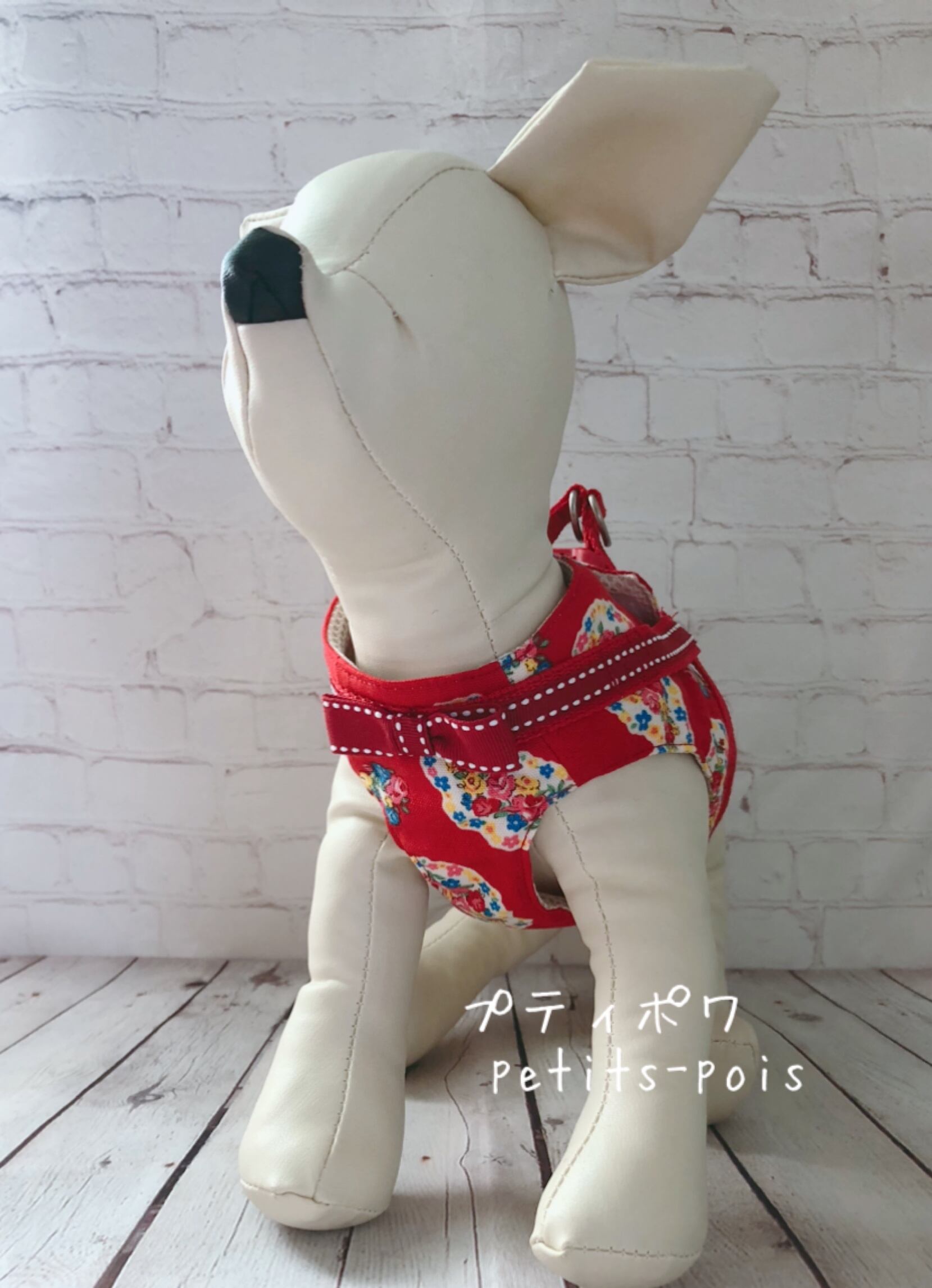 犬猫ハーネス お花ペーズリー レッドリボン