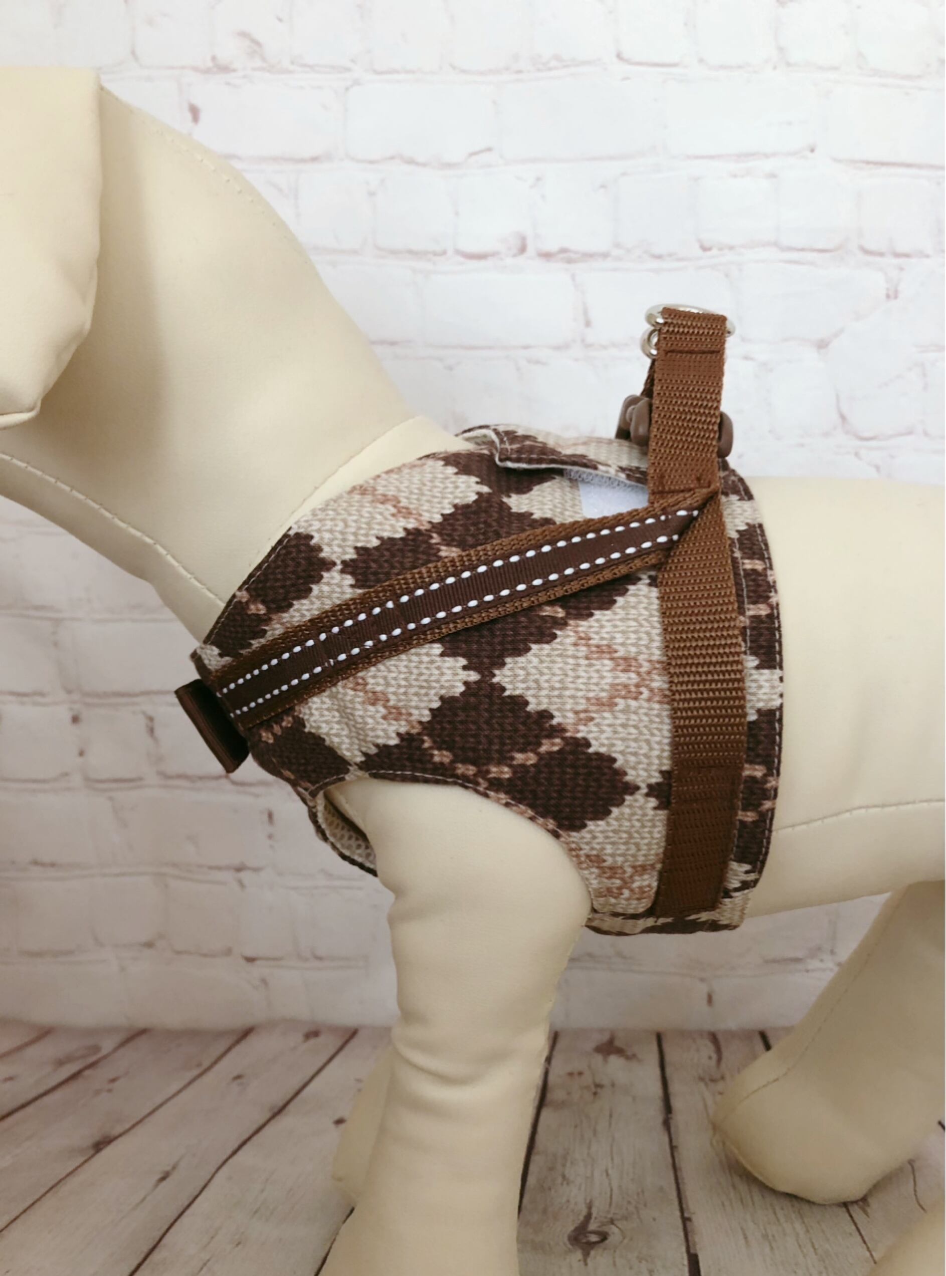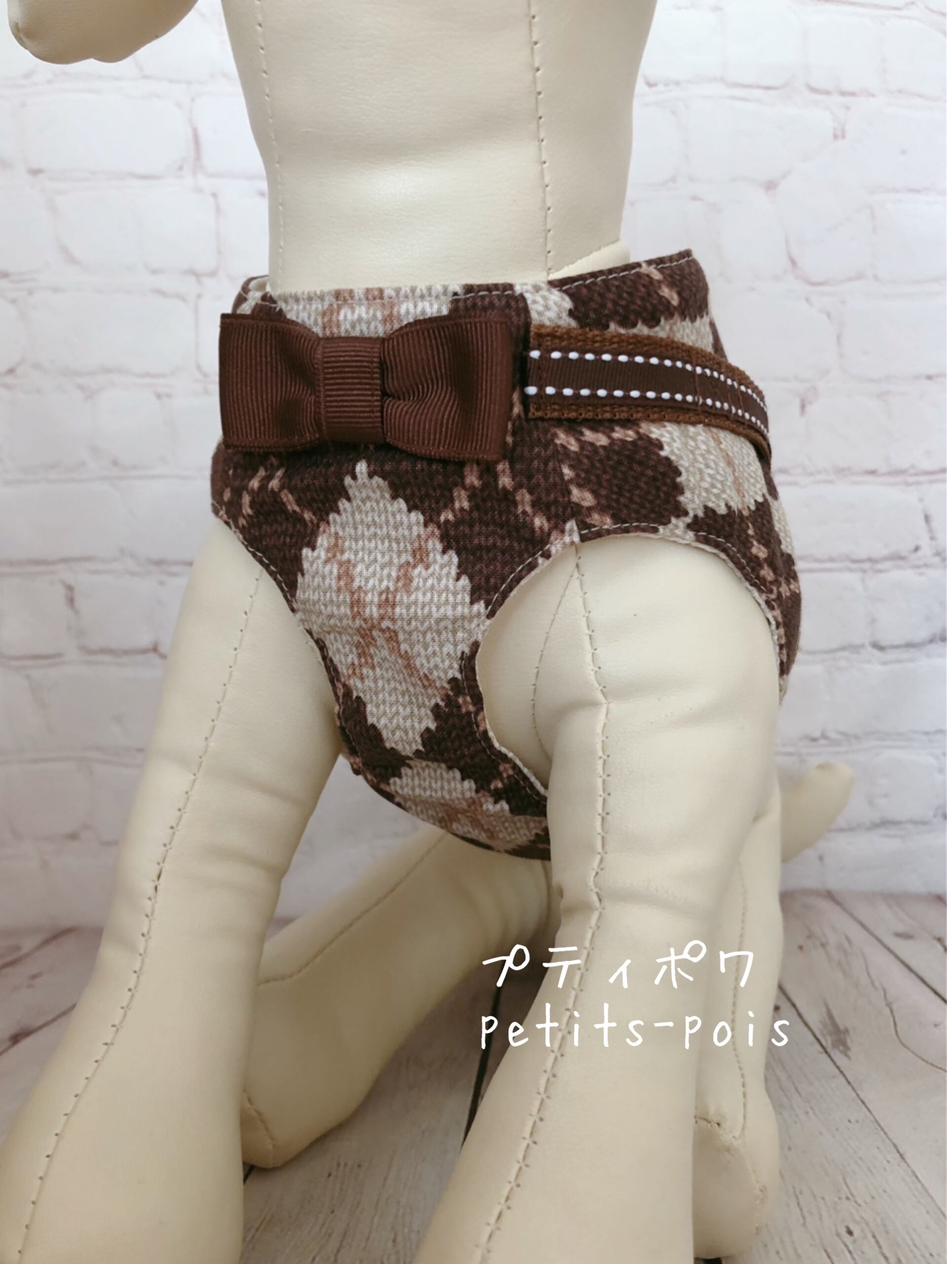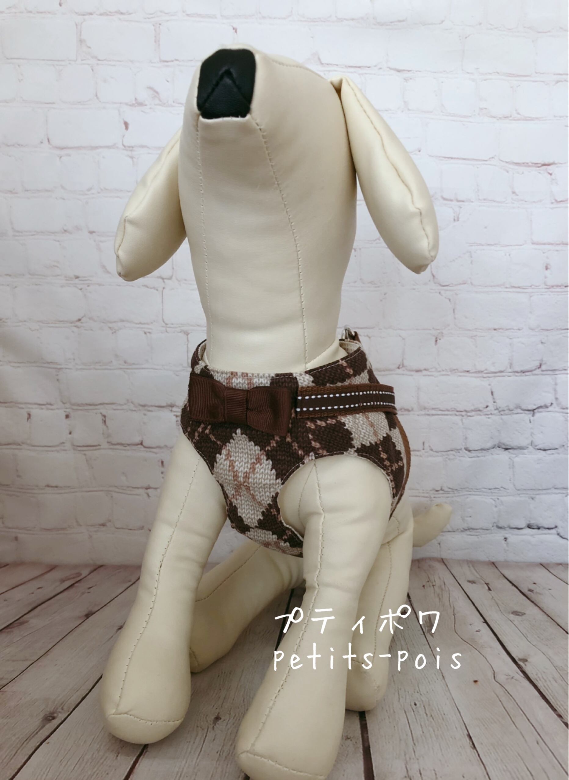 ❤︎ リアルなプリント生地です。編み地リアルプリント柄のハーネスにブラウン蝶ネクタイがアクセントになってます。
