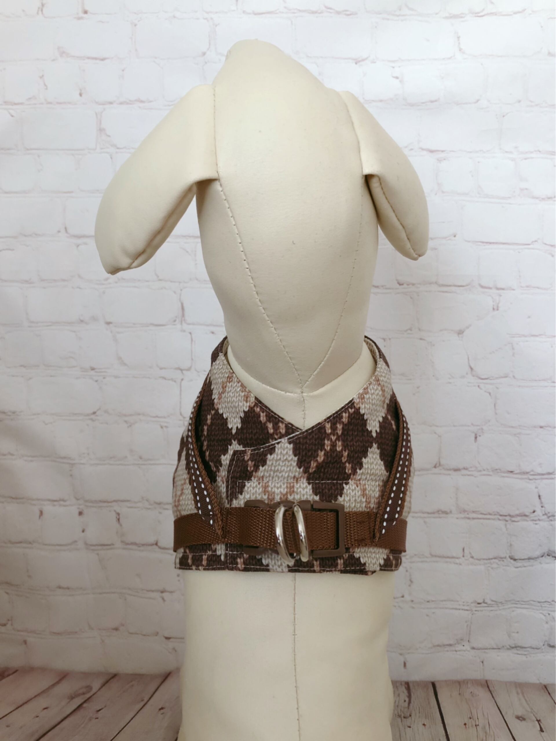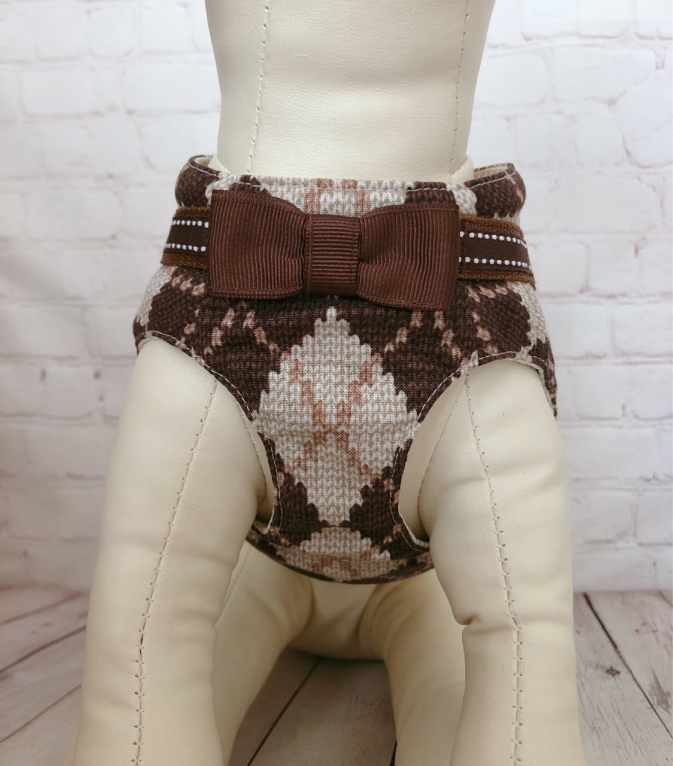 犬猫ハーネス 編み地リアルプリント柄 ブラウン蝶ネクタイ