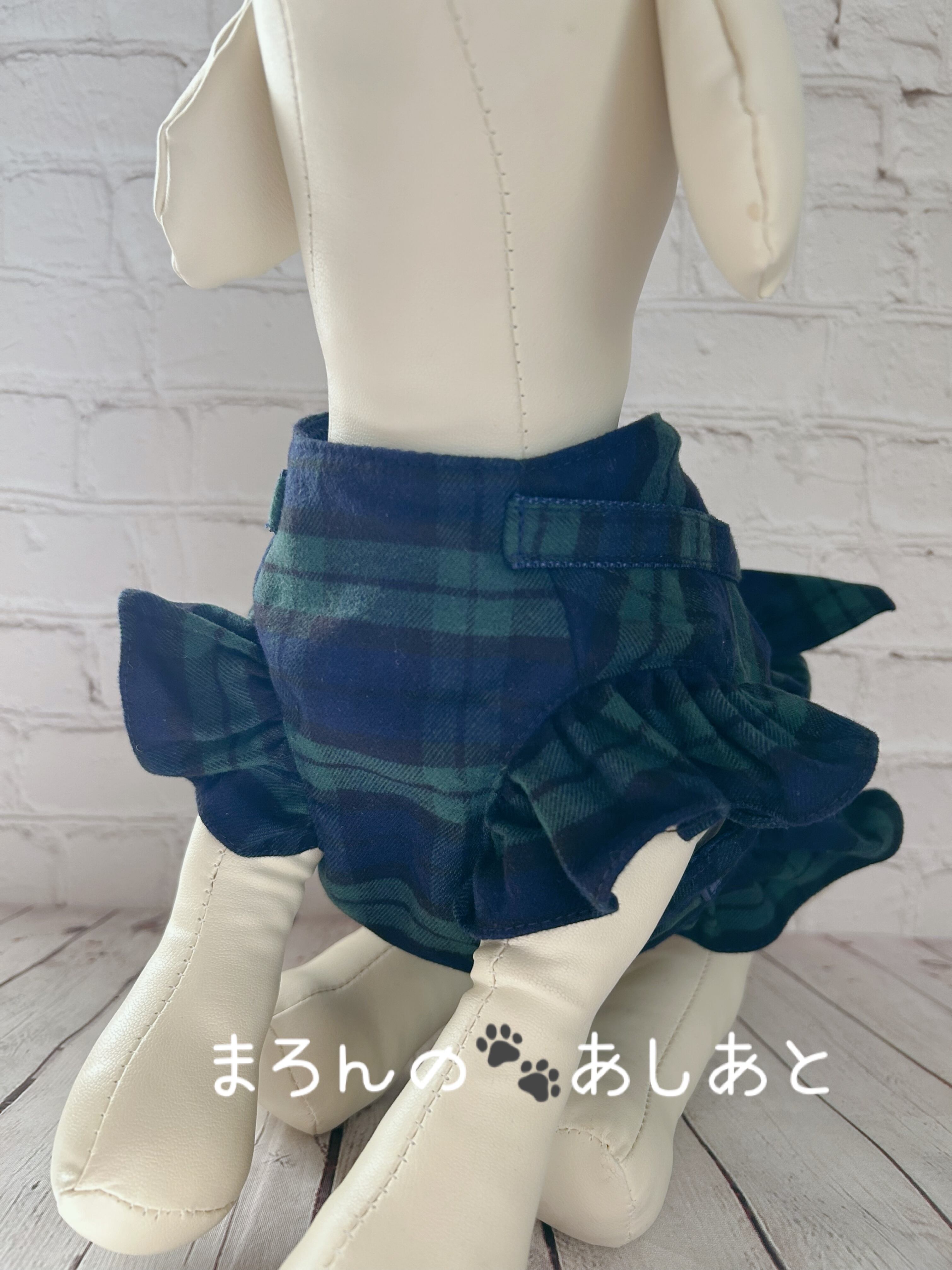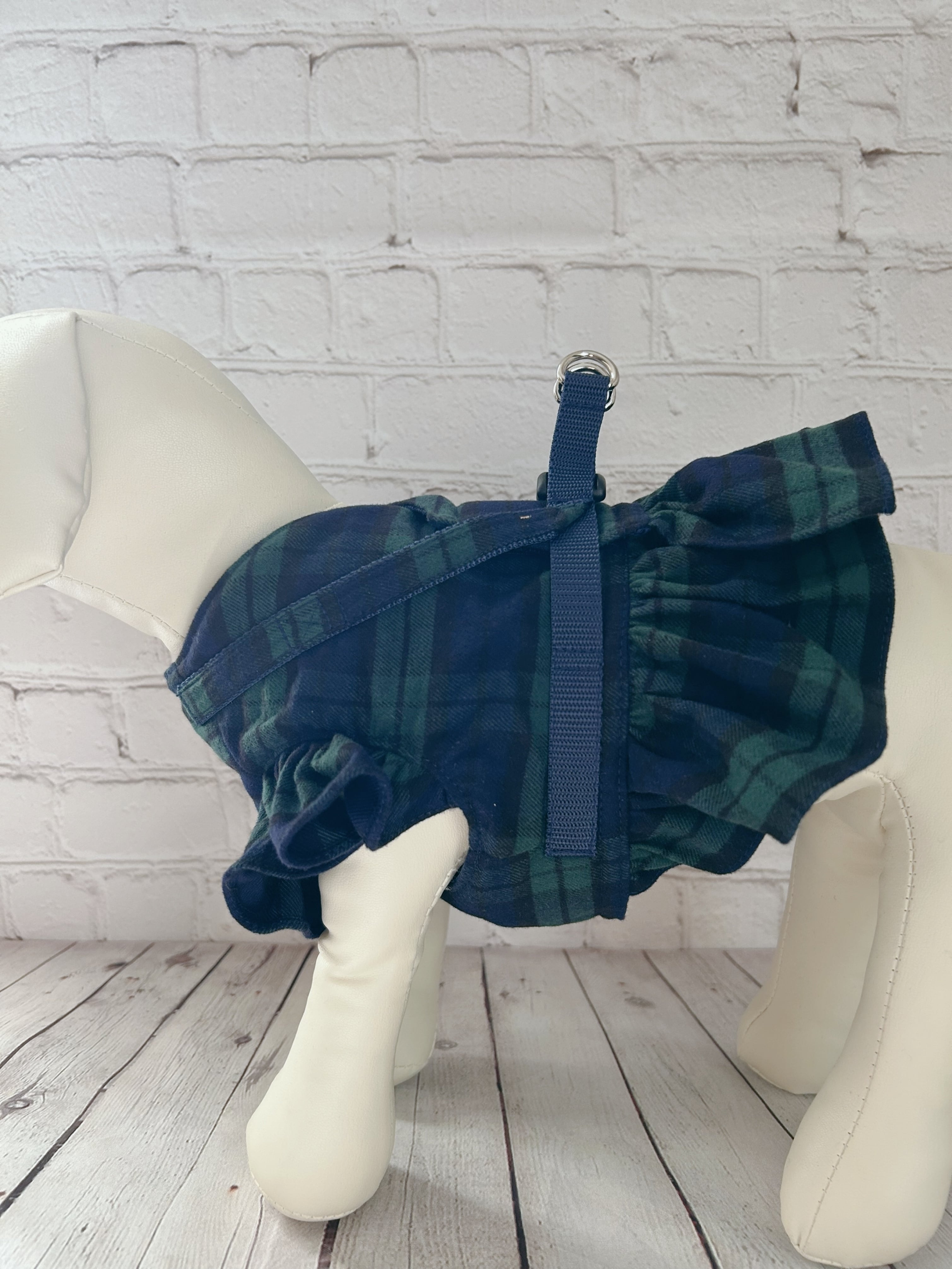 犬猫ハーネス 表起毛ブラックウォッチ 袖・裾フリル付