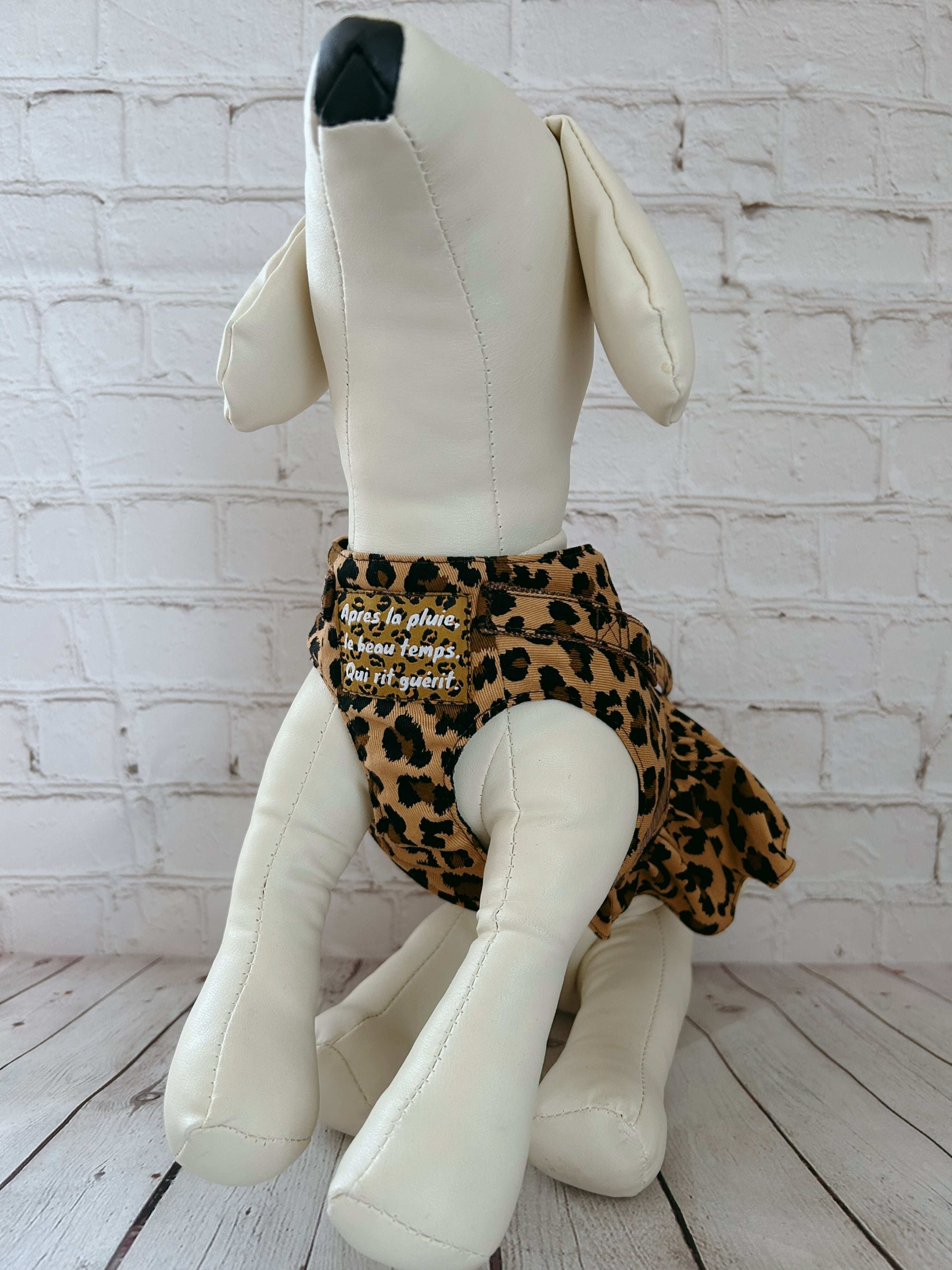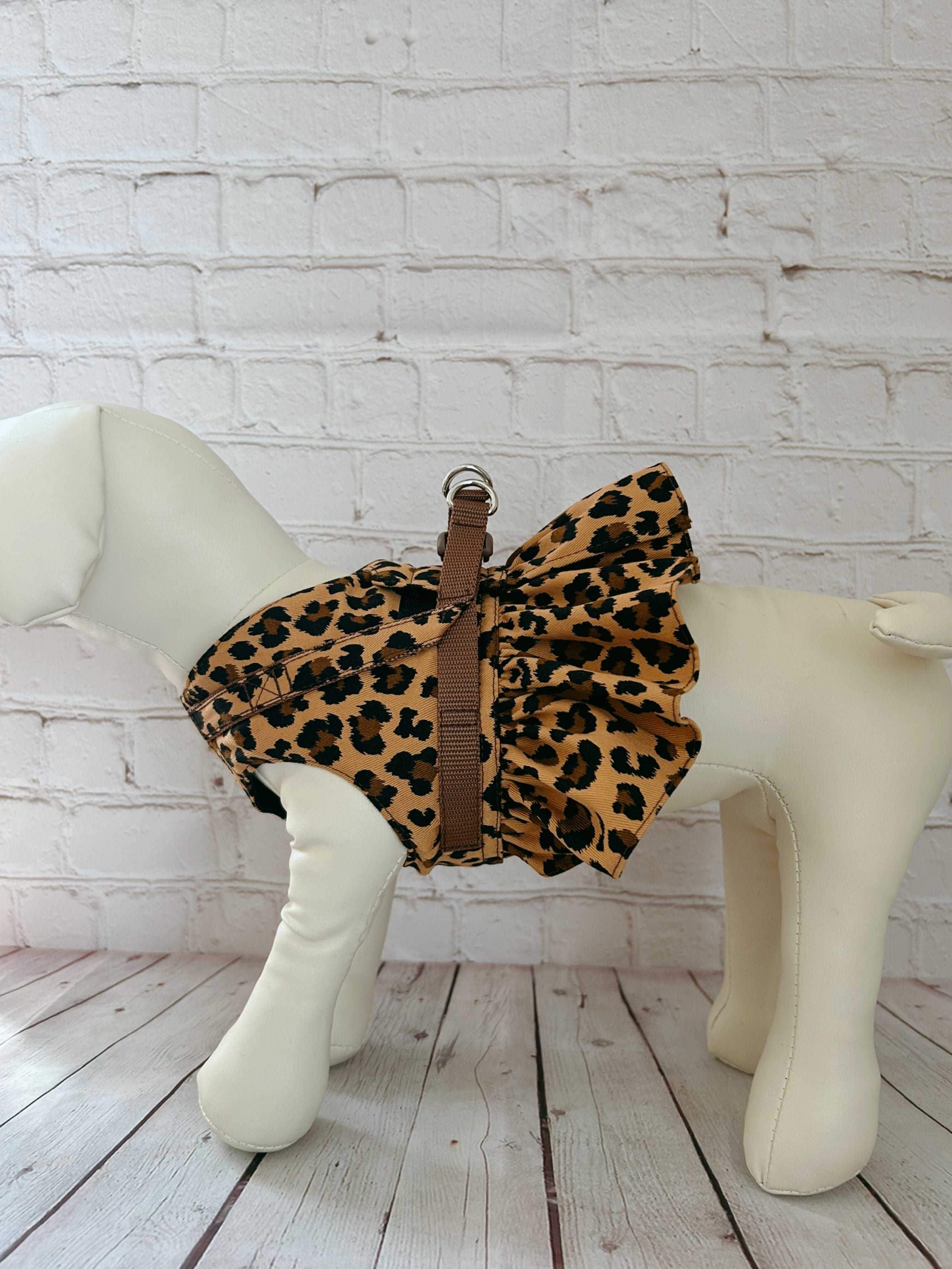 犬猫ハーネス ヒョウ柄 裾フリル付