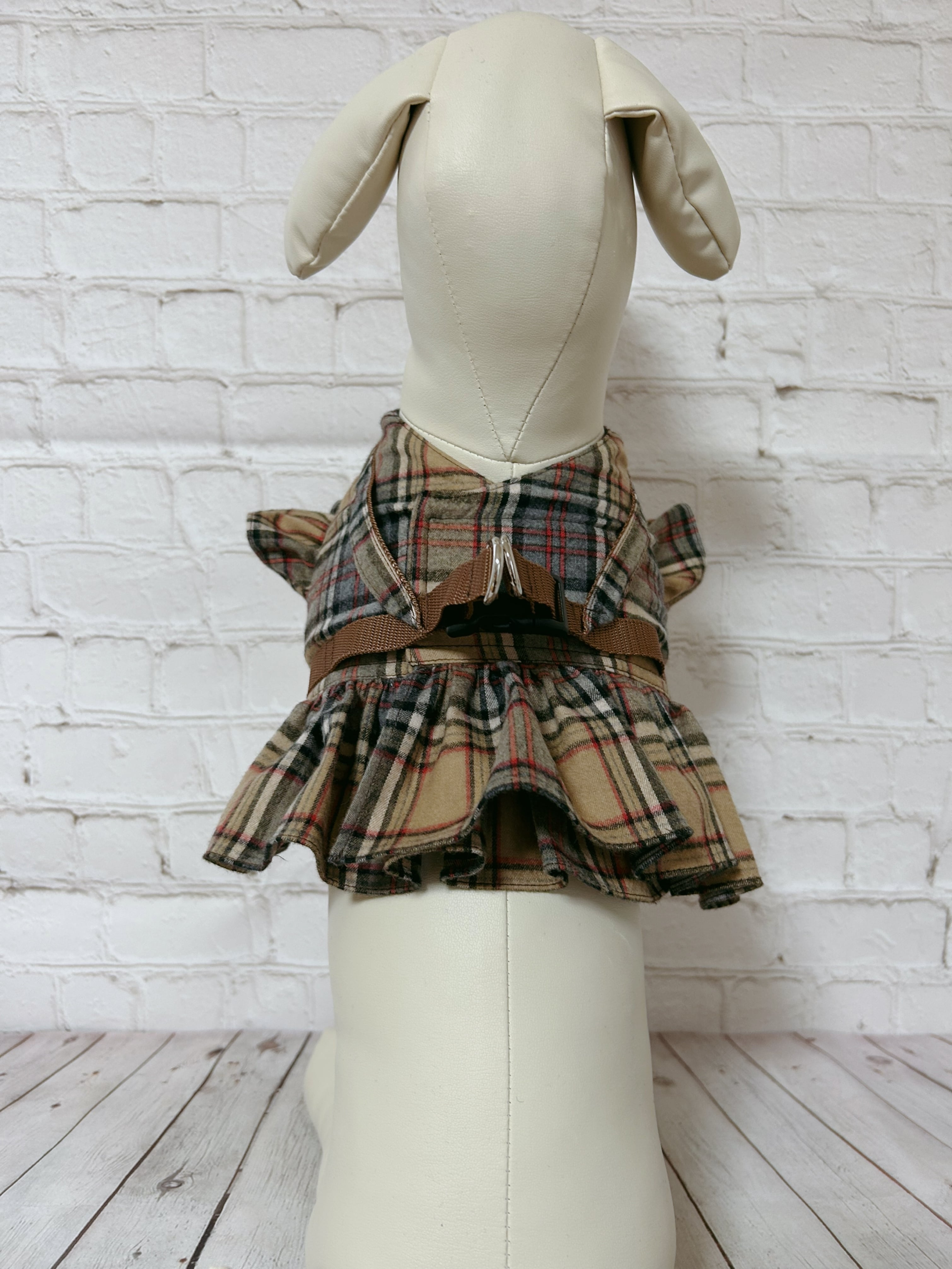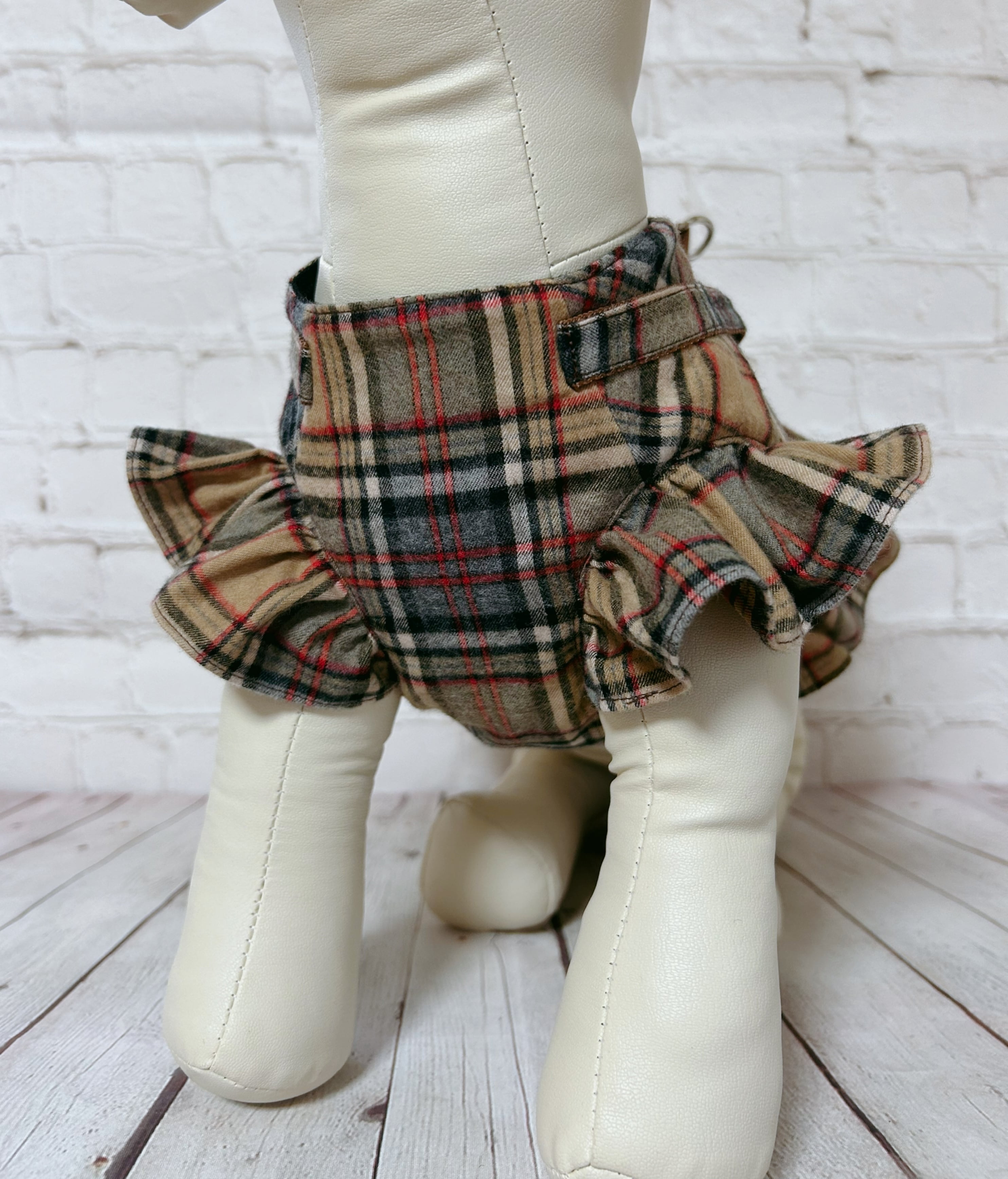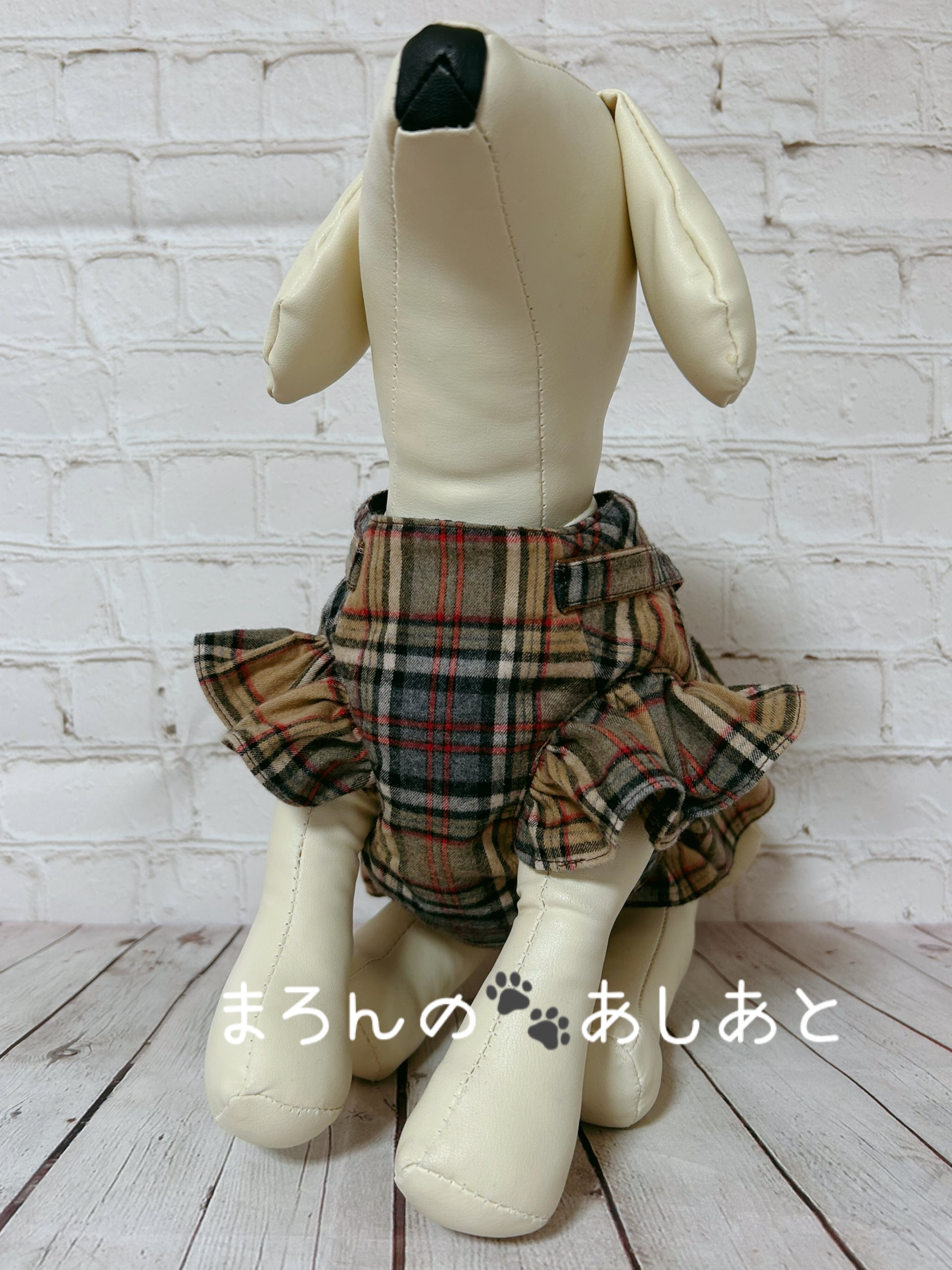 犬猫ハーネス 表起毛タータンチェック 袖・裾フリル付